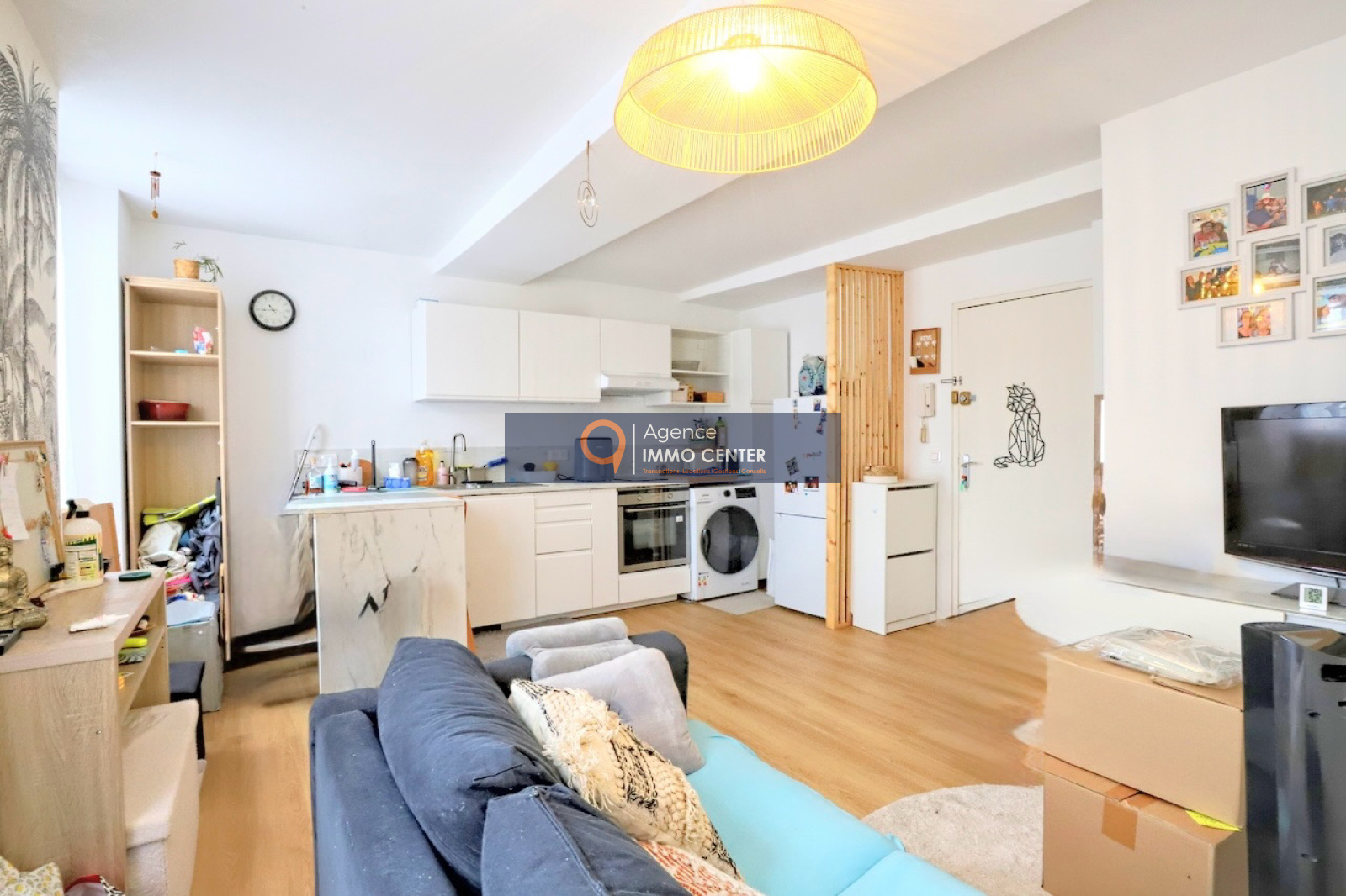 Cet appartement est composé d'un salon/séjour avec cuisine ouverte semi aménagée et semi équipée, d'une chambre, et d'une salle d'eau avec WC.