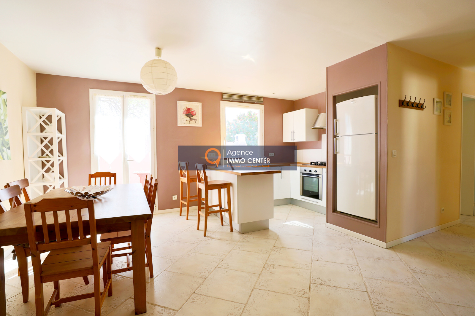 Solliès-Pont (83210)EXCLUSIVITE - A Sollies-Pont, Sainte Christine, maison de plain-pied de type T3 de 65 m², traversante, comprenant : cuisine ouverte sur séjour donnant sur terrasse de 21 m², salon avec cheminée à insert, 2 chambres, salle d'eau avec WC et garage attenant de 16 m² sur une parcelle de 201 m² avec parkings pour plusieurs voitures, à proximité du Centre Commercial à pied.