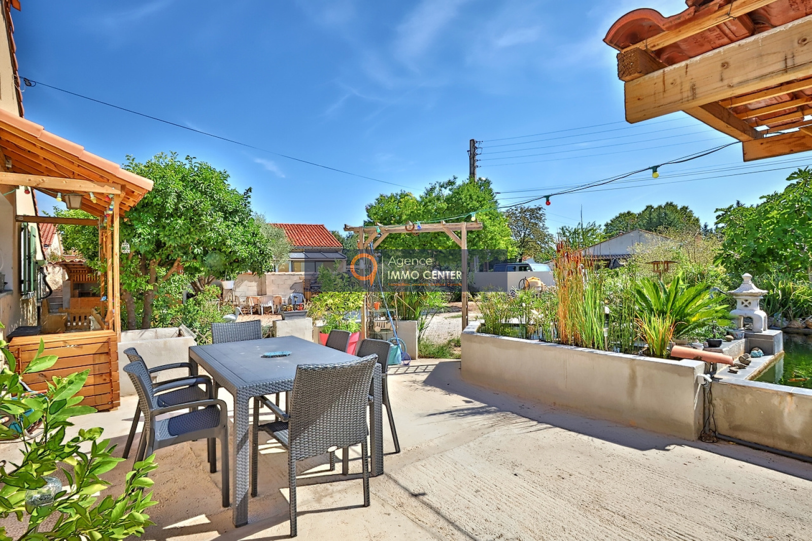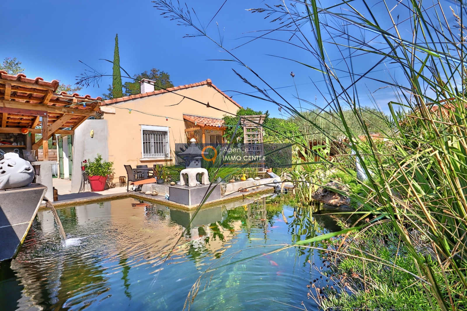 Solliès-Pont (83210)En " Exclusivité " cette ravissante maison ancienne complètement " rénovée dans un esprit contemporain " de 96m² habitables de plain pied proche des commodités et des écoles. Cette villa offre à ce jour un vaste et lumineux salon avec son espace salle à manger, une cuisine équipée légèrement séparée, un cellier / buanderie, une agréable salle d'eau avec son wc, 2 vraies chambres, plus une troisième modulable en fonction de vos envies, de nombreux placards. Nous trouvons aussi un atelier et de multiples ambiances pour les terrasses et l'espace piscine un magnifique bassin à poisson. De nobles matériaux, et un poêle à bois très performant pour le mode de chauffage.Un jardin de 567m² orne cette jolie maison située au coeur de ce charmant village de Solliès Pont.( Pour le stationnement 4 véhicules dans la propriété et deux autres devant la maison ). Produit de qualité a découvrir sans tarder!!!