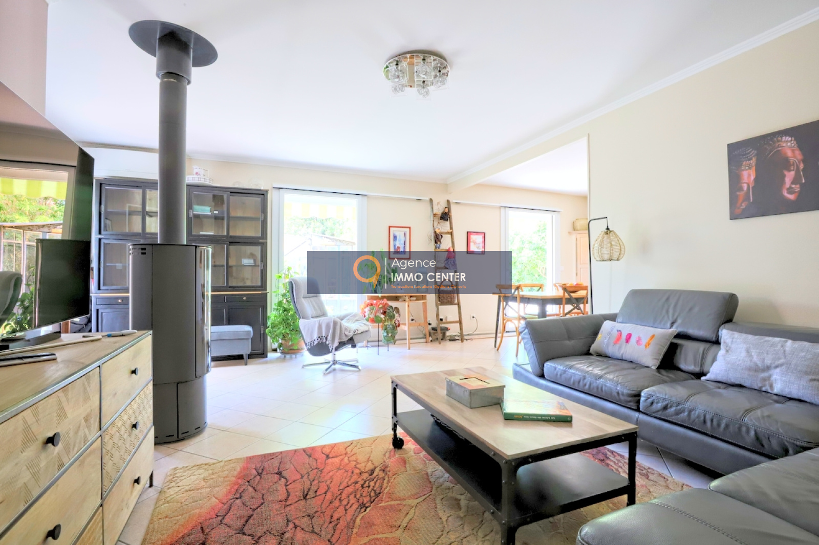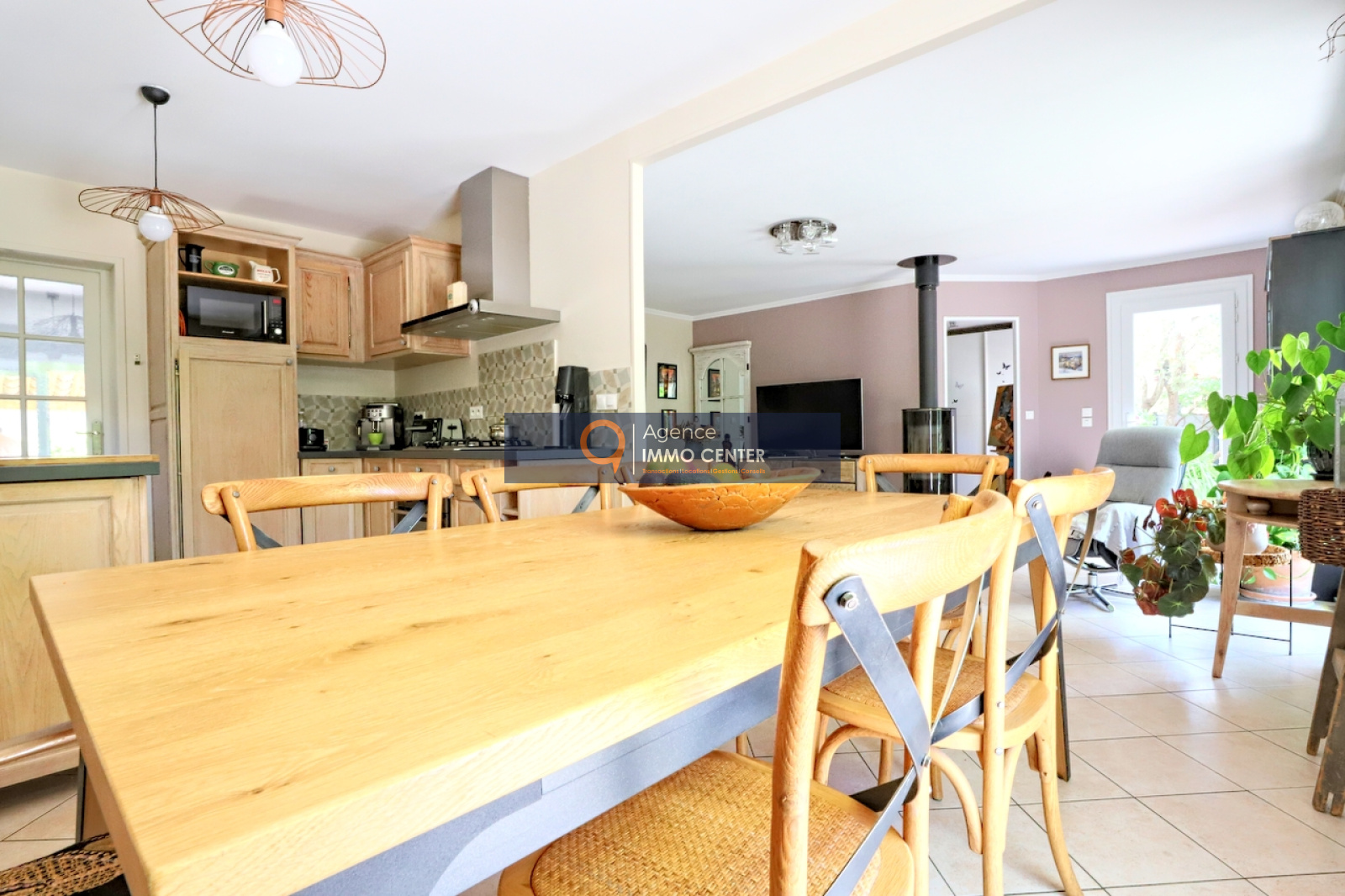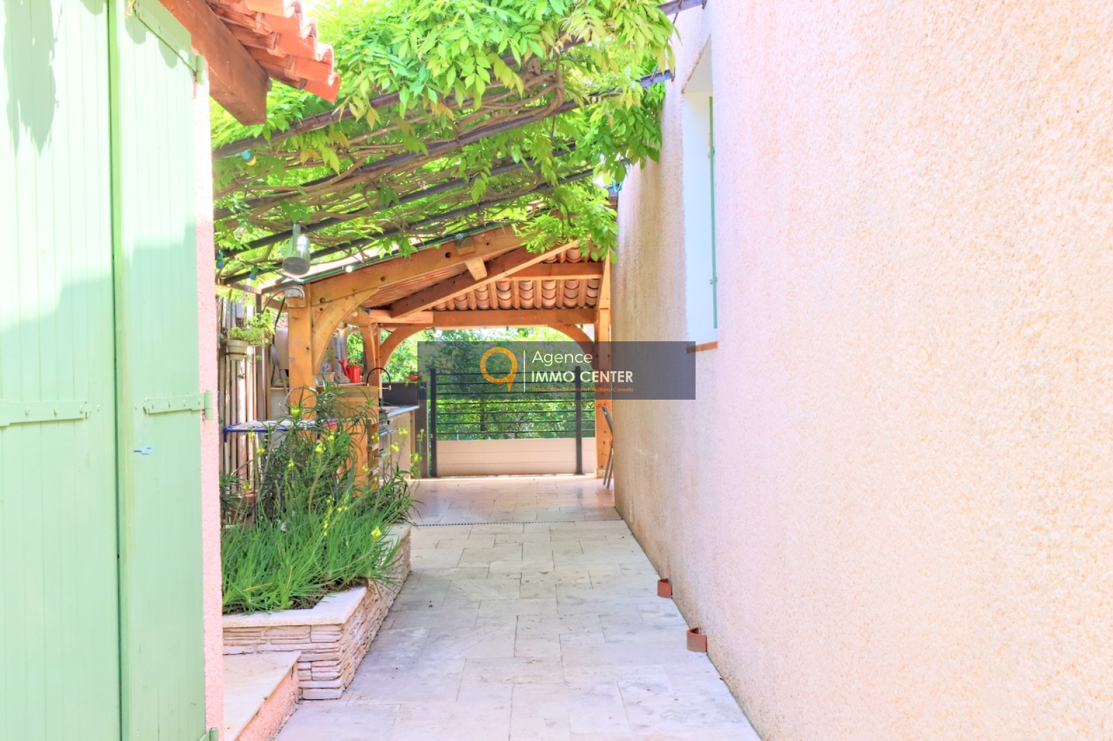 Solliès-Pont (83210)A Sollies-Pont, La Pépinière, au calme, lumineuse maison de type T4 de 100 m², de plain-pied, aux prestations de qualité, comprenant : cuisine équipée donnant sur salle à manger, salon avec poêle à bois, 3 chambres, salle d'eau, WC, buanderie et cellier sur une parcelle de 402 m² arboré d'essences méridionales avec bassin de 3x2 m chauffé, cuisine d'été, douche et WC extérieur, 4 dépendances et 2 places de parking, à proximité du coeur du village.