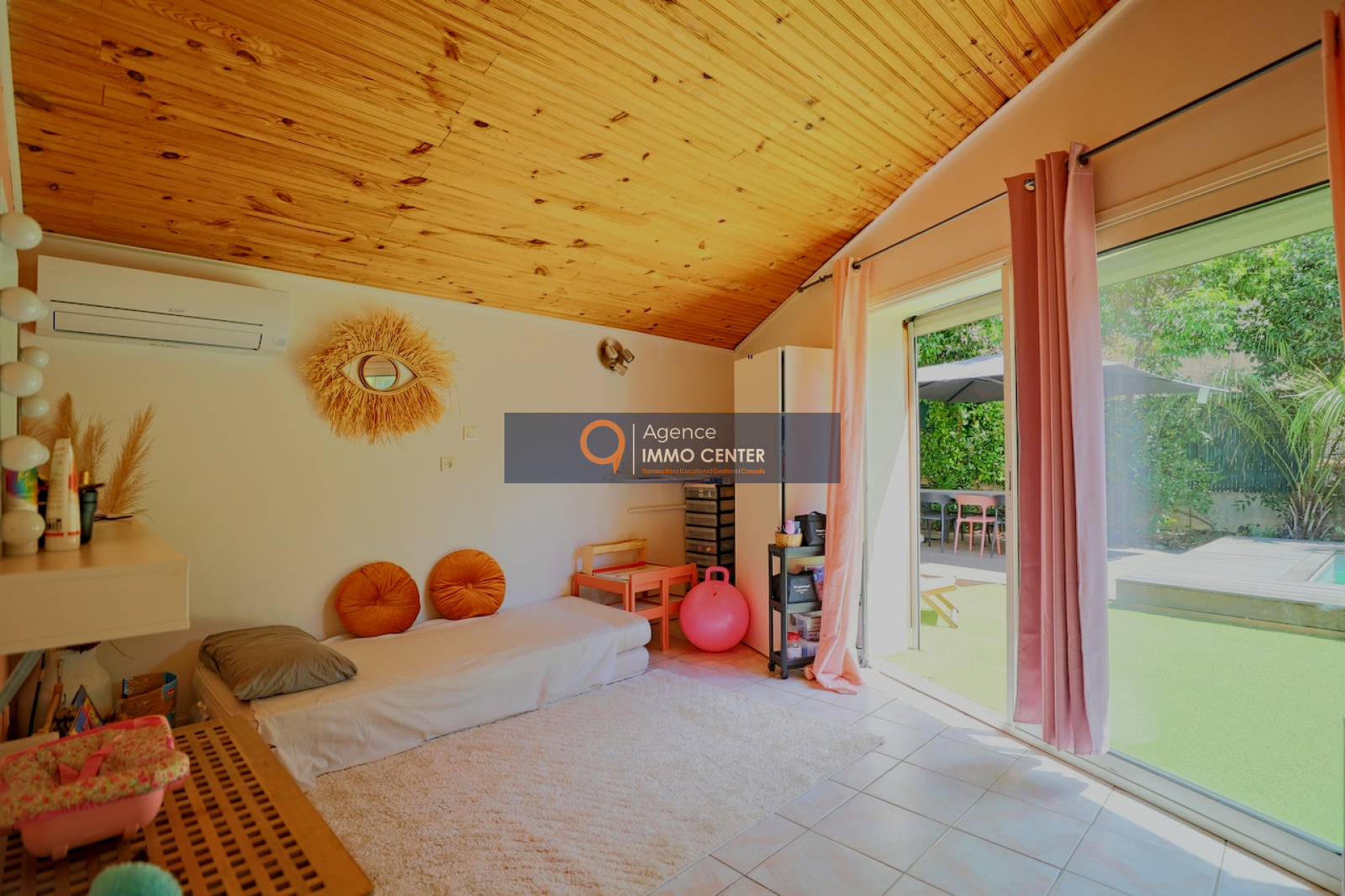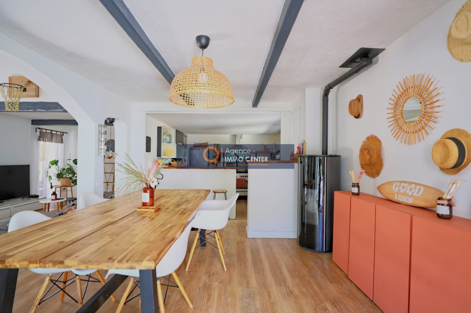 Cette maison mitoyenne d'un coté, se compose d'un vaste espace de vie lumineux et confortable, avec son séjour cuisine ouverte d'une superficie de presque 60m2, donnant un accès à une terrasse, vous trouverez sur ce même niveau un grand espace buanderie, ainsi qu'une grande chambre avec un accés direct sur le jardin, et un wc indépendant.