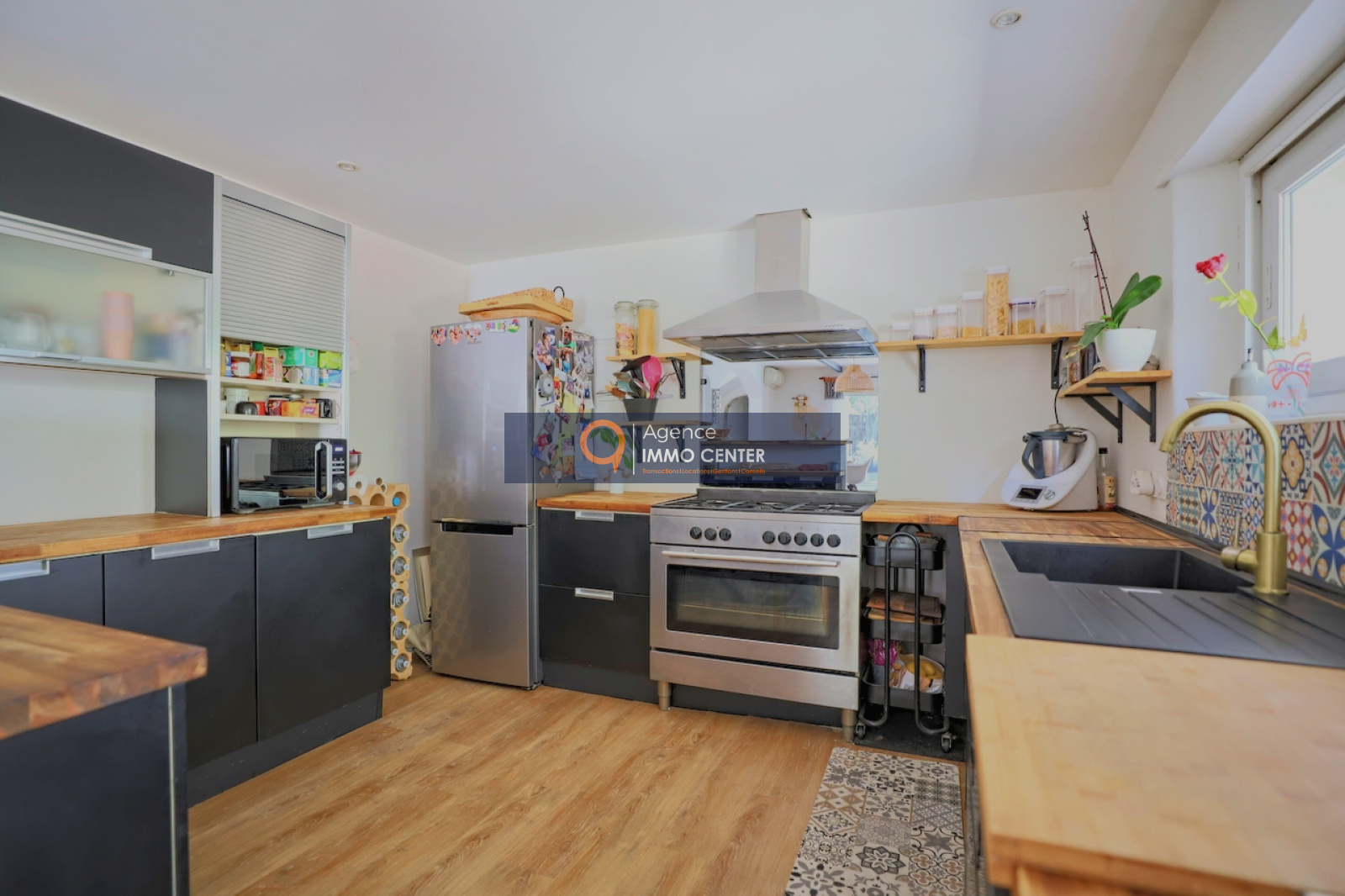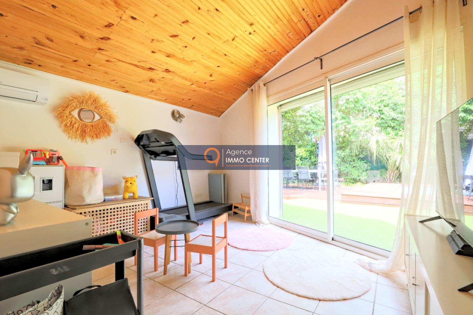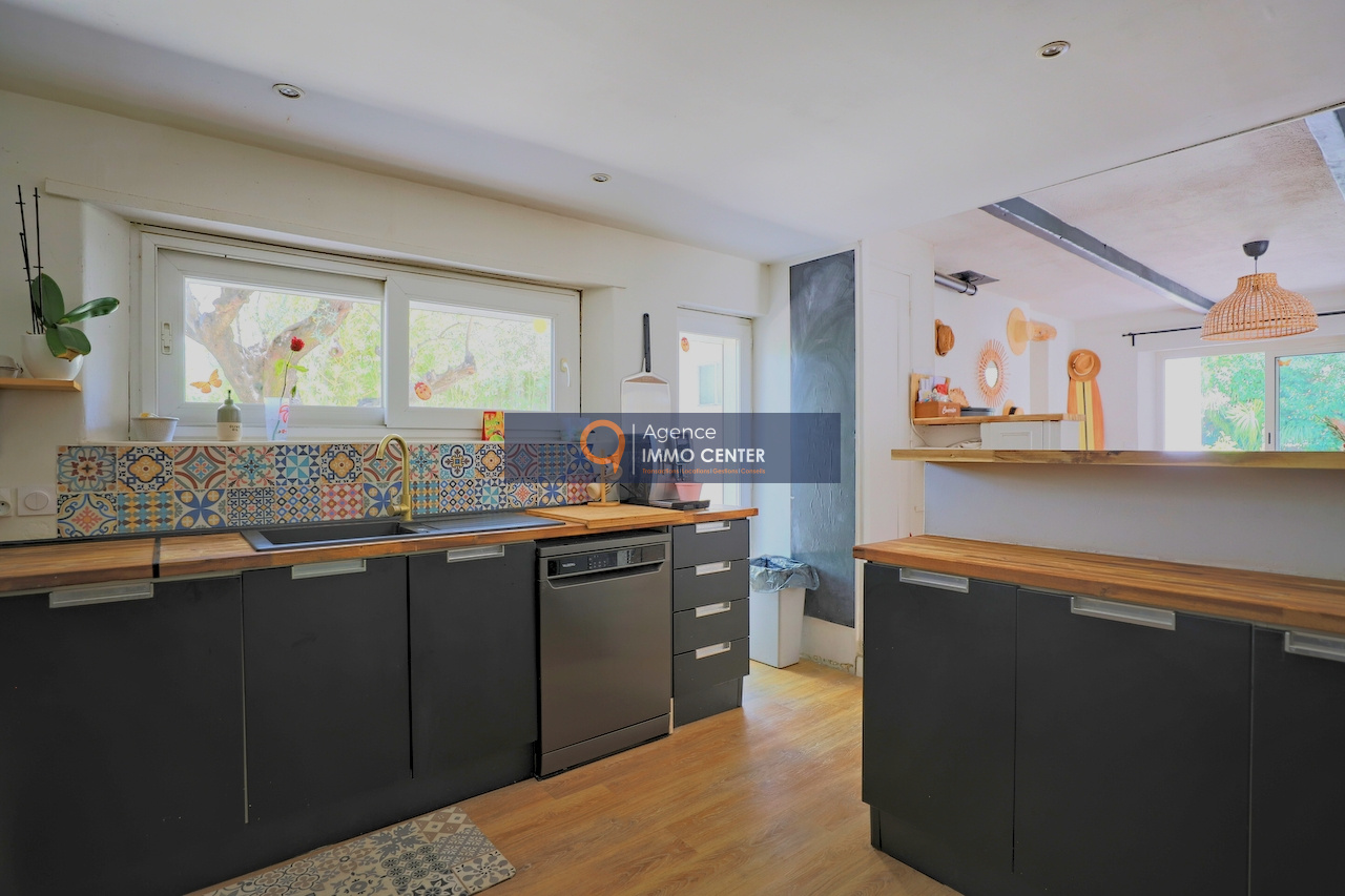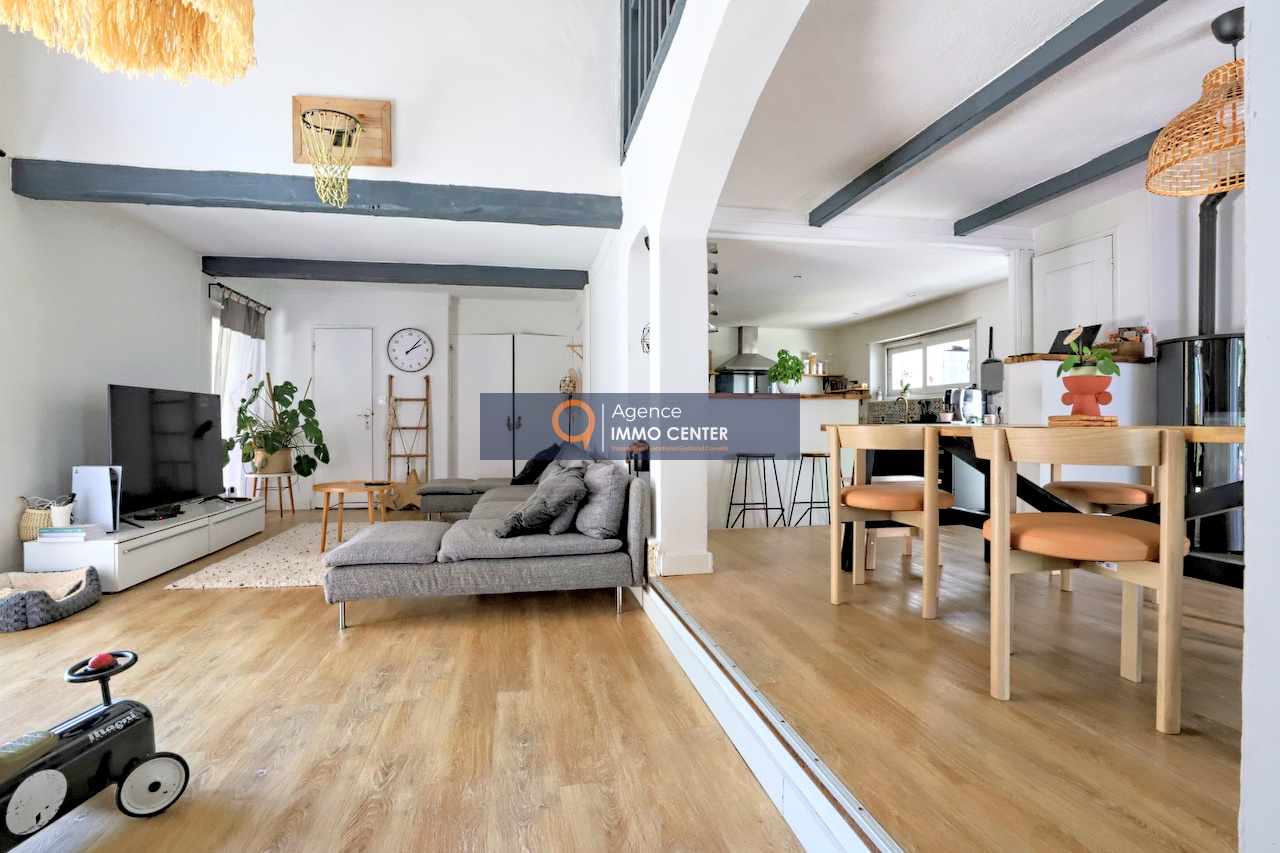 Cette maison mitoyenne d'un coté, se compose d'un vaste espace de vie lumineux et confortable, avec son séjour cuisine ouverte d'une superficie de presque 60m2, donnant un accès à une terrasse, vous trouverez sur ce même niveau un grand espace buanderie, ainsi qu'une grande chambre avec un accés direct sur le jardin, et un wc indépendant.