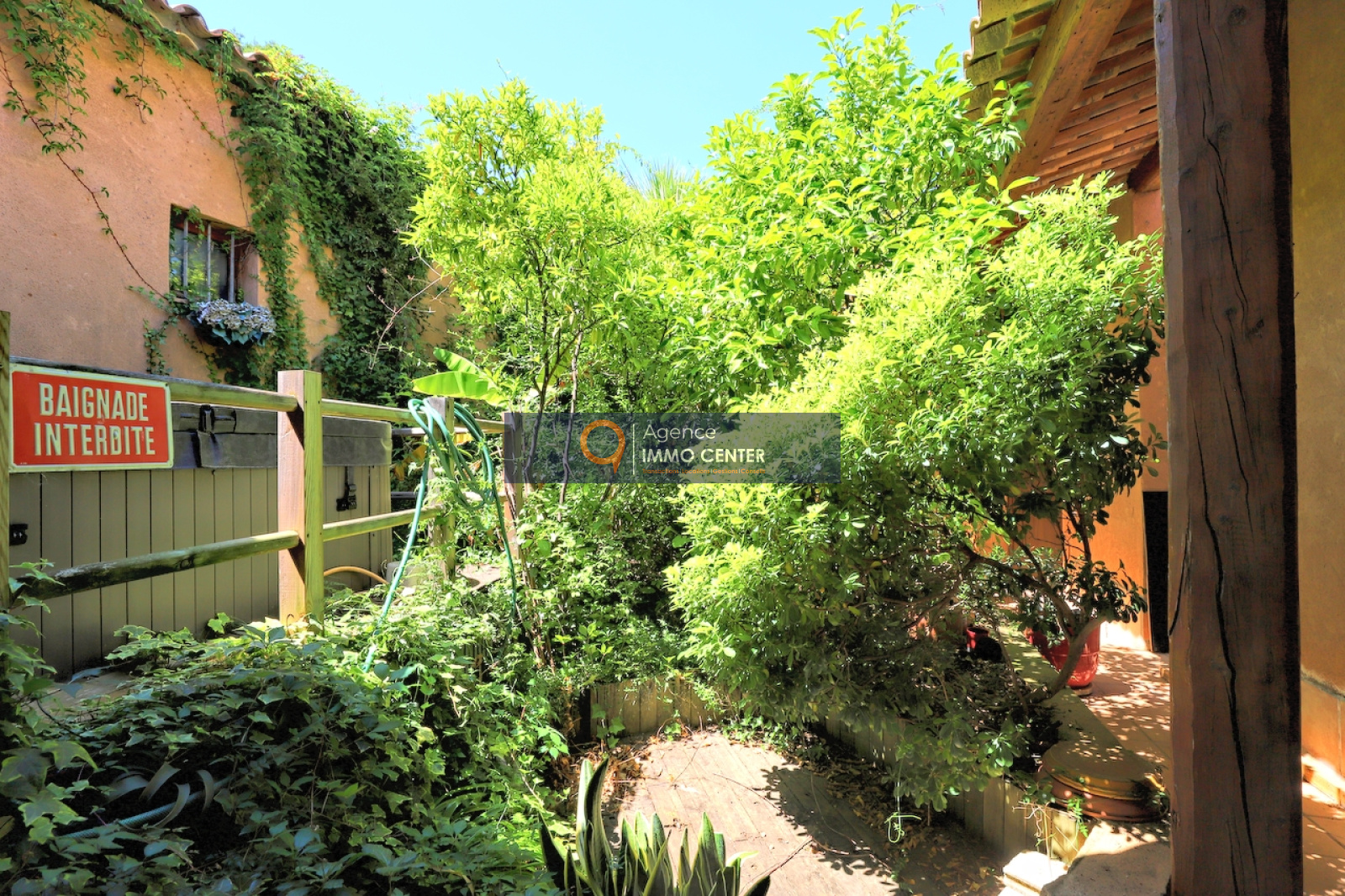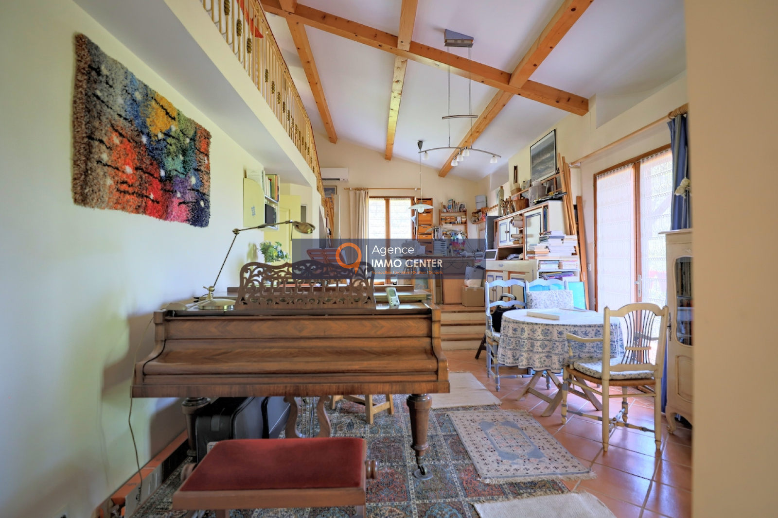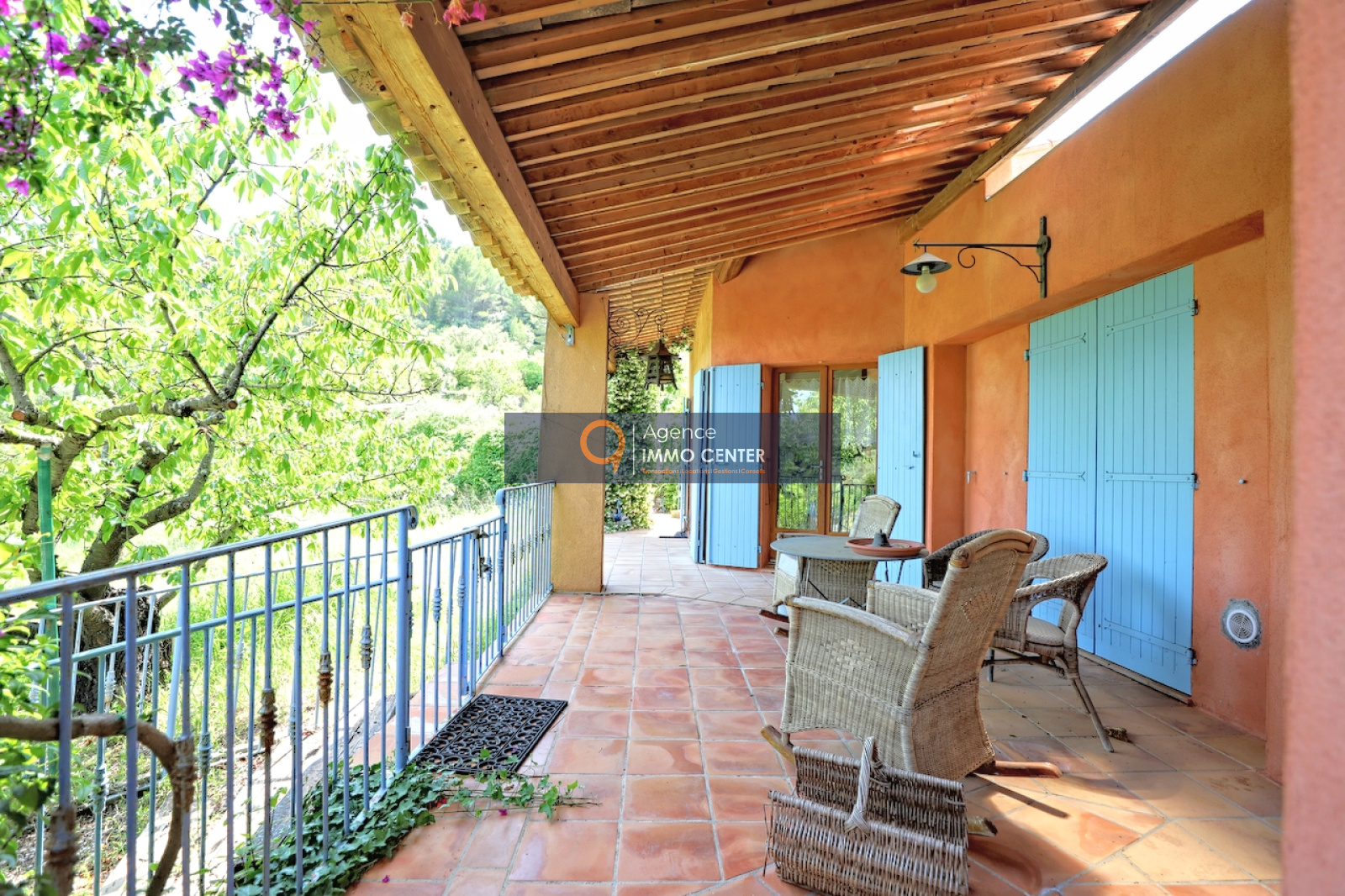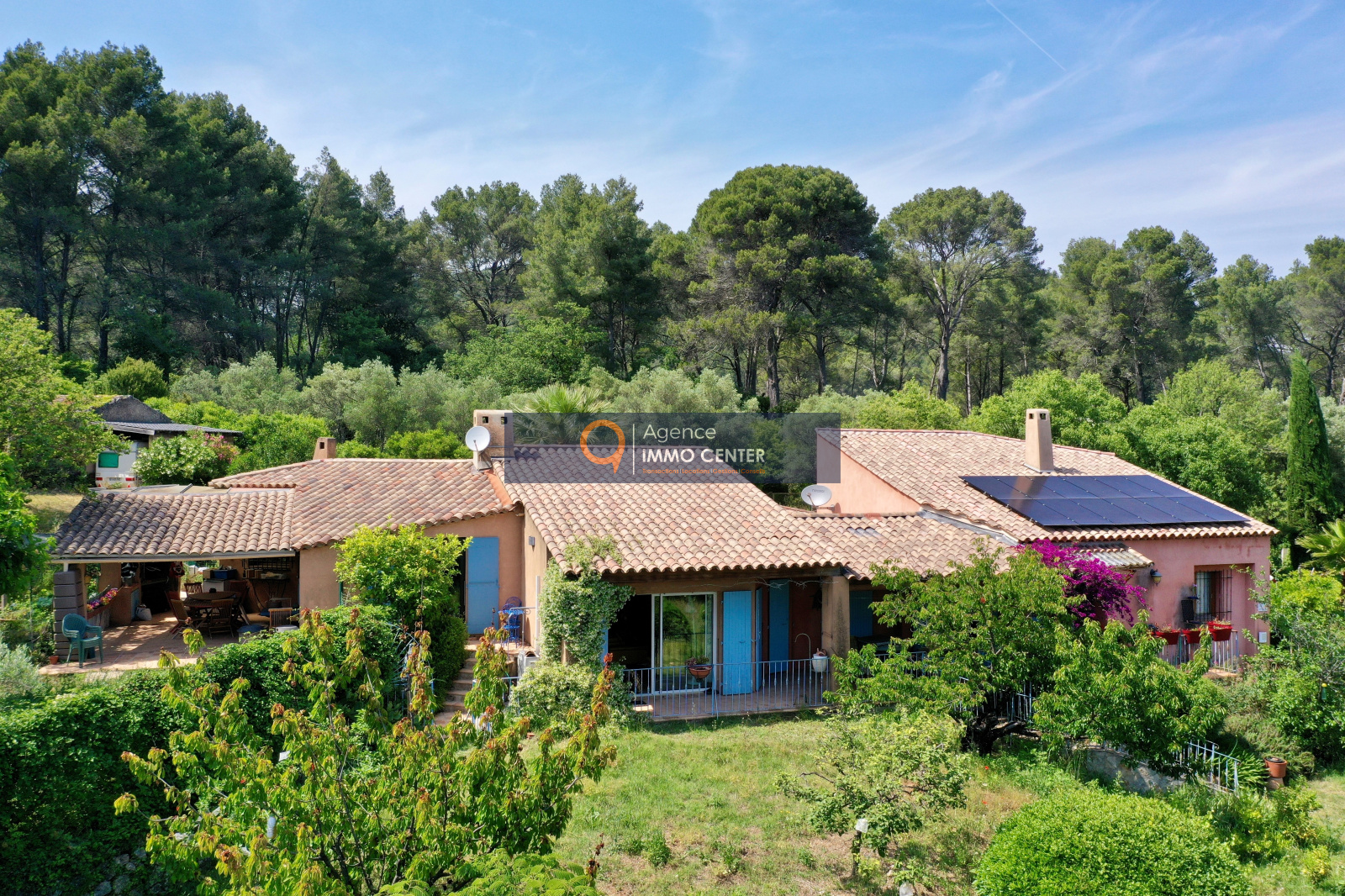 Solliès-Pont (83210)SOUS COMPROMIS - EXCLUSIVITE - A Sollies-Pont, Haut de Sainte Christine, dans un écrin de verdure au calme, lumineuse maison style hacienda aux équipements modernes, de type T5 de 215 m², traversante, comprenant : cuisine semi-ouverte avec poêle à bois/four, cellier, salon avec cheminée et mezzanine, 2 chambres, salle de bain, salle d'eau, 2 WC, salon de musique/atelier avec cheminée et mezzanine, cave et garage isolé de 35 m² et appartement de type T2 indépendant sur une parcelle en restanques de 2 600 m² avec patio arboré, jacuzzi et parking pour plusieurs voitures