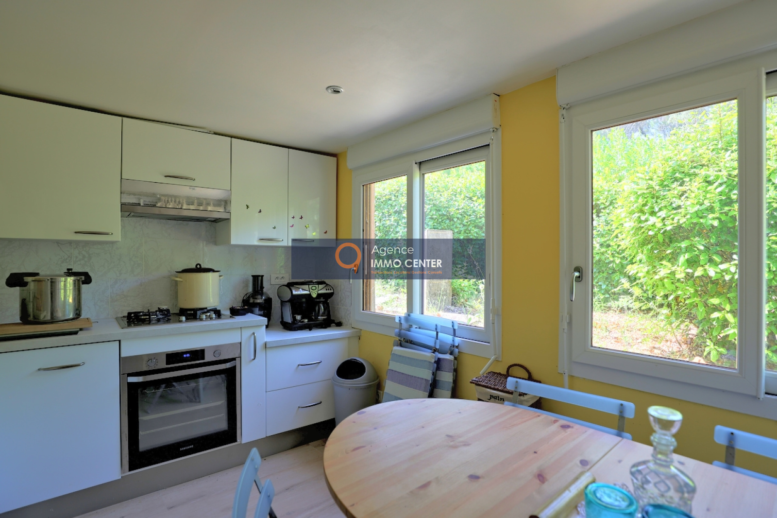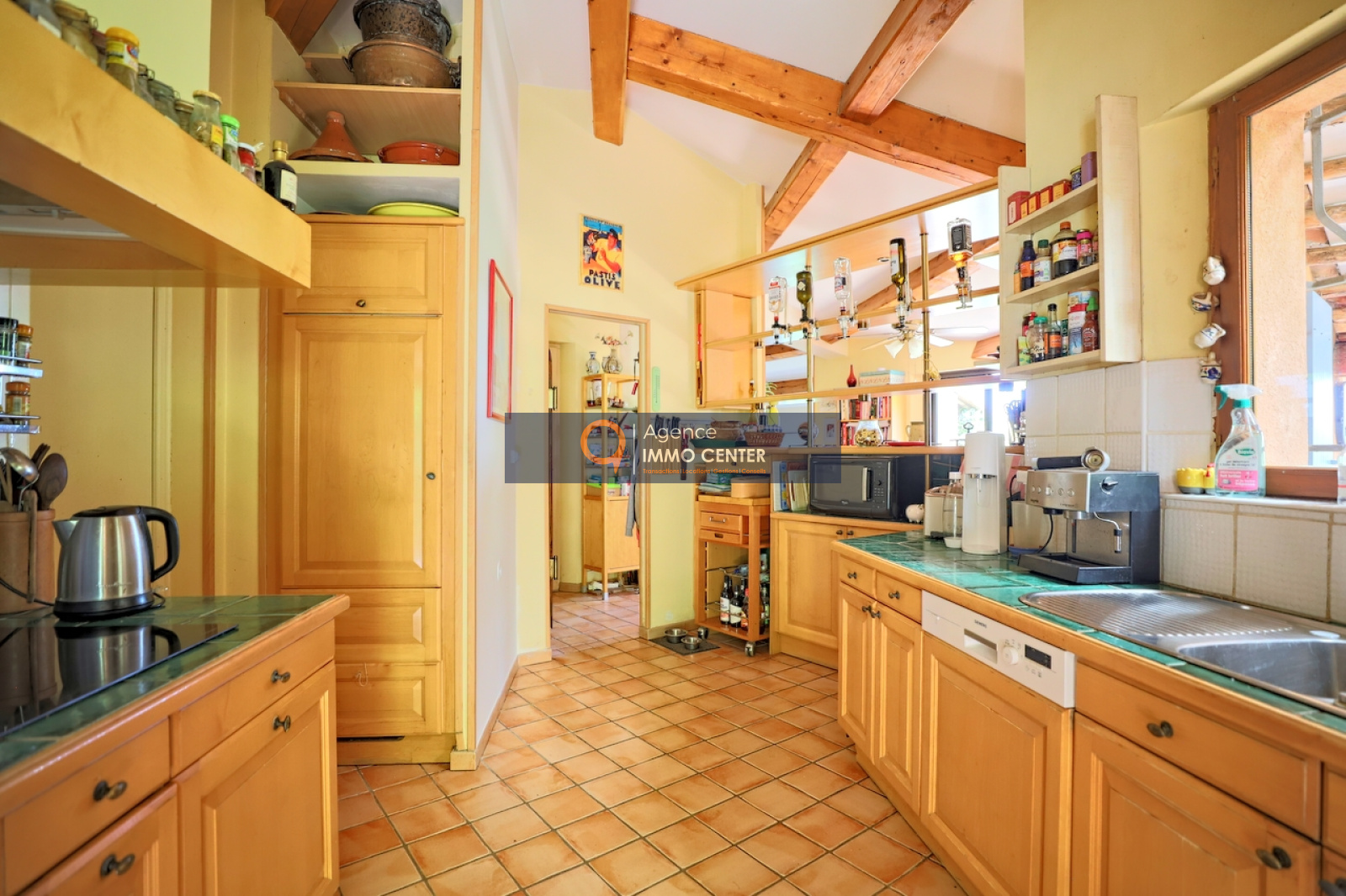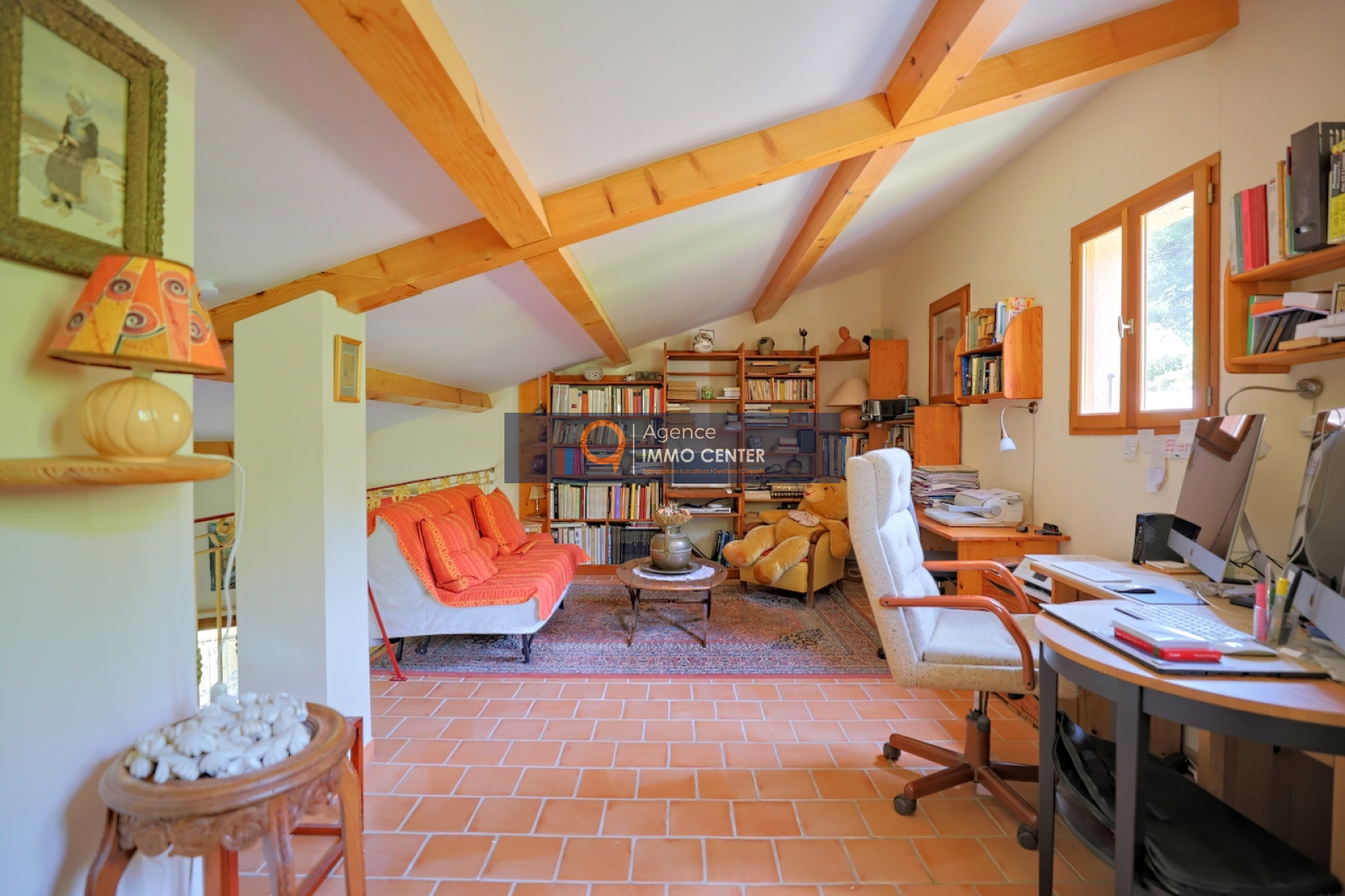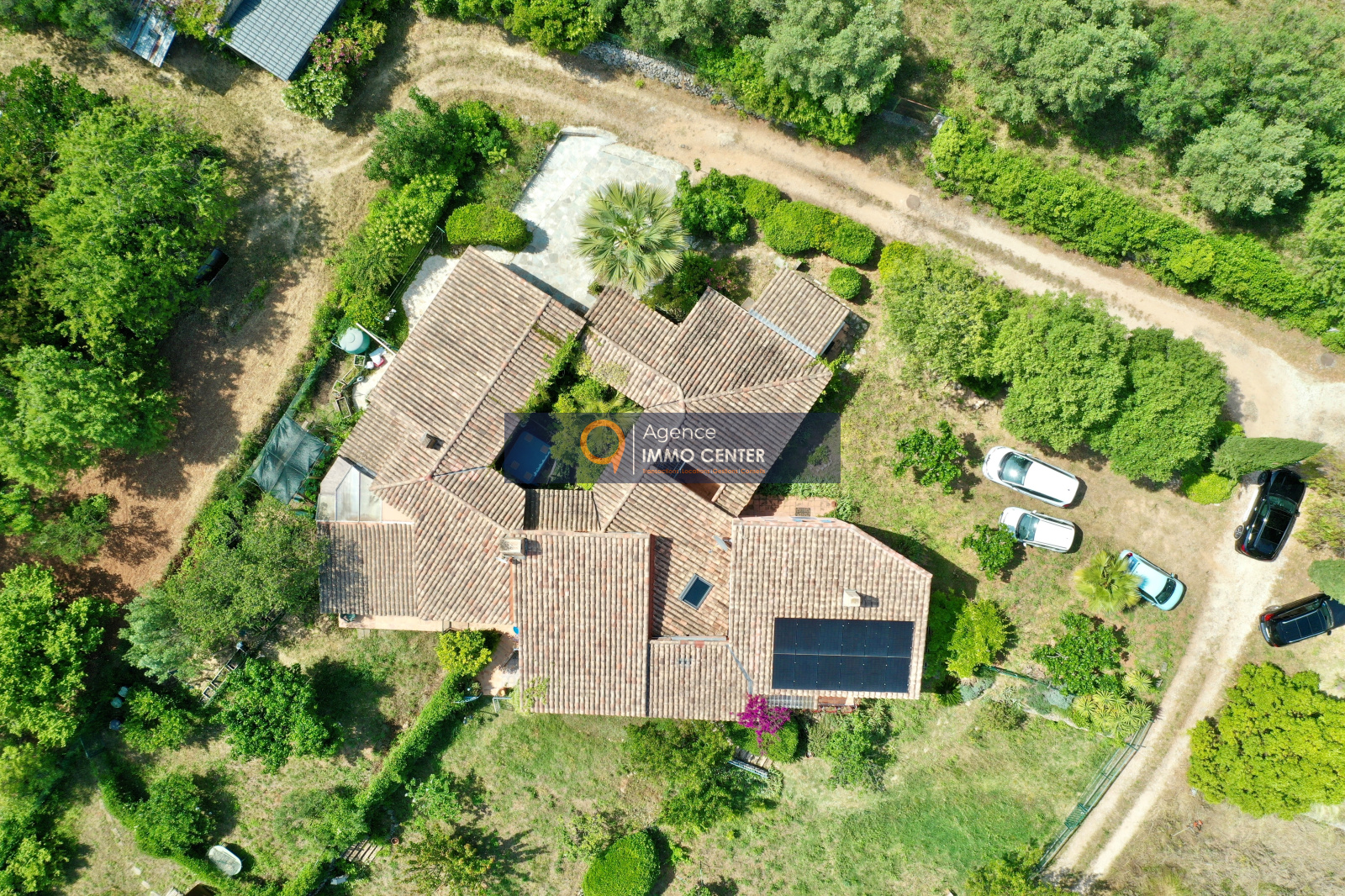 Solliès-Pont (83210)SOUS COMPROMIS - EXCLUSIVITE - A Sollies-Pont, Haut de Sainte Christine, dans un écrin de verdure au calme, lumineuse maison style hacienda aux équipements modernes, de type T5 de 215 m², traversante, comprenant : cuisine semi-ouverte avec poêle à bois/four, cellier, salon avec cheminée et mezzanine, 2 chambres, salle de bain, salle d'eau, 2 WC, salon de musique/atelier avec cheminée et mezzanine, cave et garage isolé de 35 m² et appartement de type T2 indépendant sur une parcelle en restanques de 2 600 m² avec patio arboré, jacuzzi et parking pour plusieurs voitures