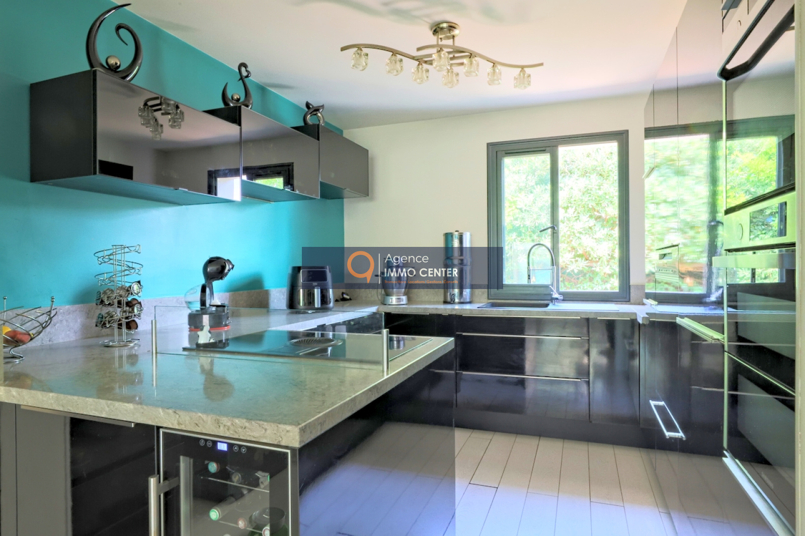 Une cuisine équipée haut de gamme, de style " contemporain " ouverte sur le séjour.
