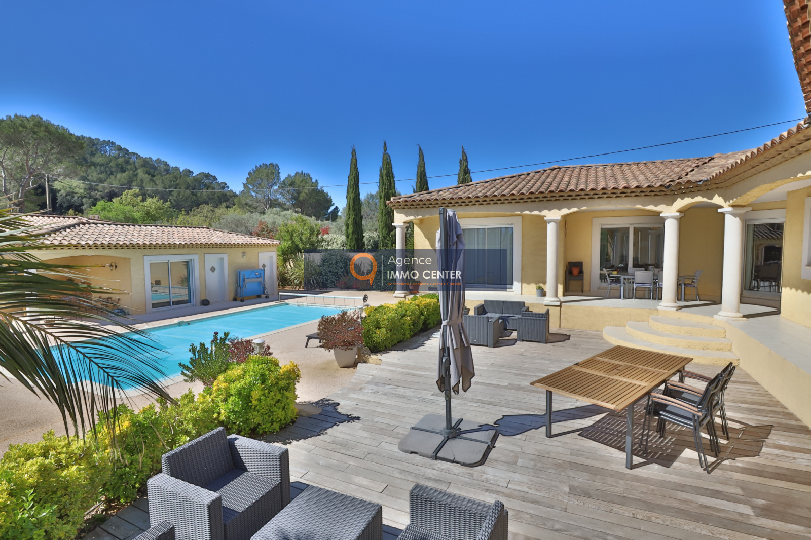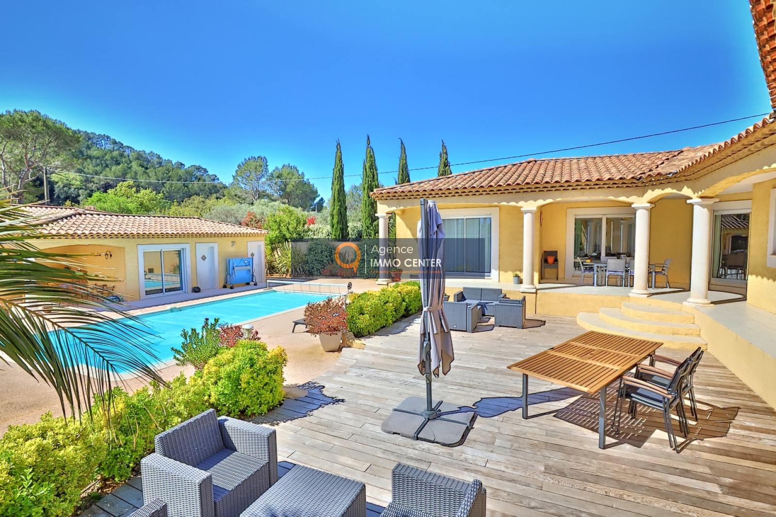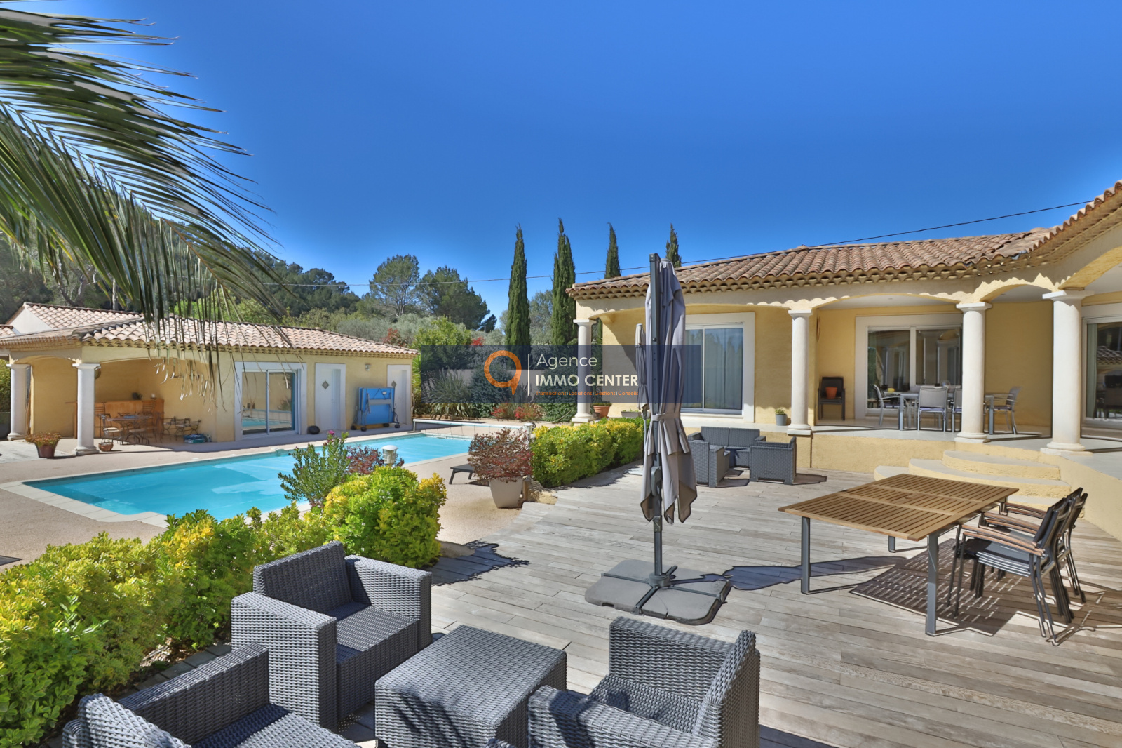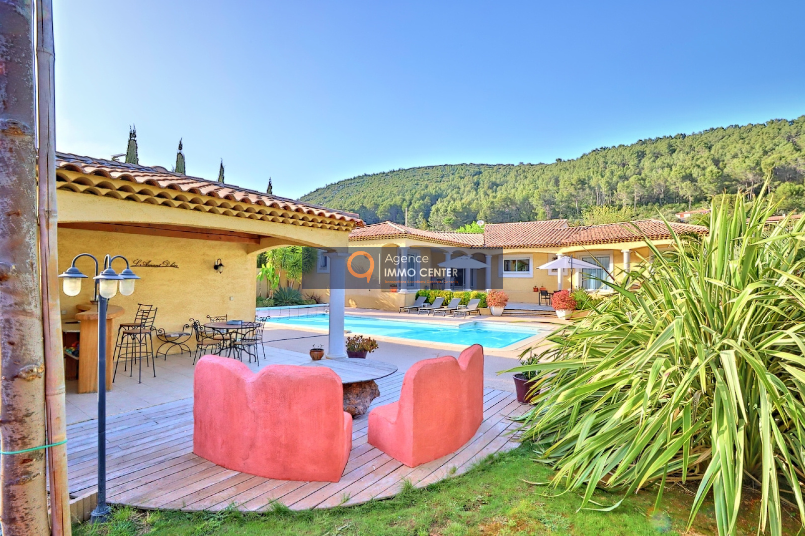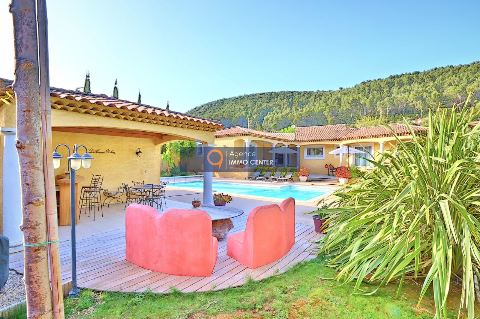 Solliès-Pont (83210)Sollies Pont, EXCLUSIVITE, superbe propriété de 230 m² habitables comprenant une villa de plain pied de 187 m², un studio independant de 35 m², un garage double de 45 m², un pool house, diverses dépendances, une grande piscine 10X5. La villa dispose d'un grand espace de vie avec cuisine équipée et cellier de 90 m², accés terrasse et piscine, 5 chambres dont une suite parentale, 2 salle d'eau, 2 Wc, le studio propose une chambre, un espace cuisine, une salle d'eau et WC. Plancher chauffant/rafraichissant par par géothermie plus clim réversible, panneaux photovoltaique, eau d'arrosage gratuite par forage, terrain plein SUD de 2000 m² clos de mur avec portail motorisé. Le secteur extremement calme est trés résidentiel et recherché, à 5 min de toutes les commodités dont gare féroviaire, 20 min des plages et de l'aéroport de hyeres les palmiers, à visiter rapidement. Mobile : 06 03 62 03 09