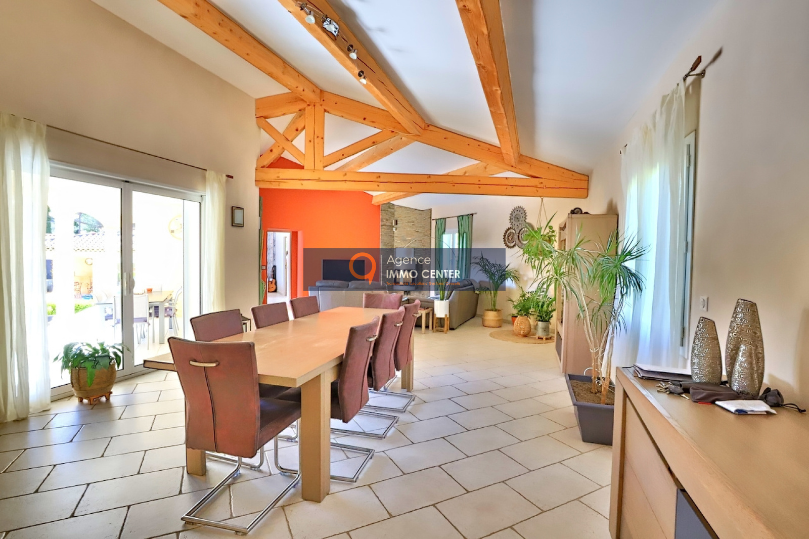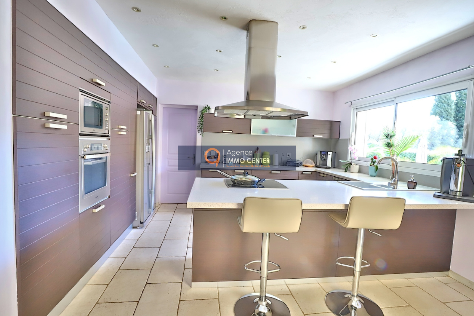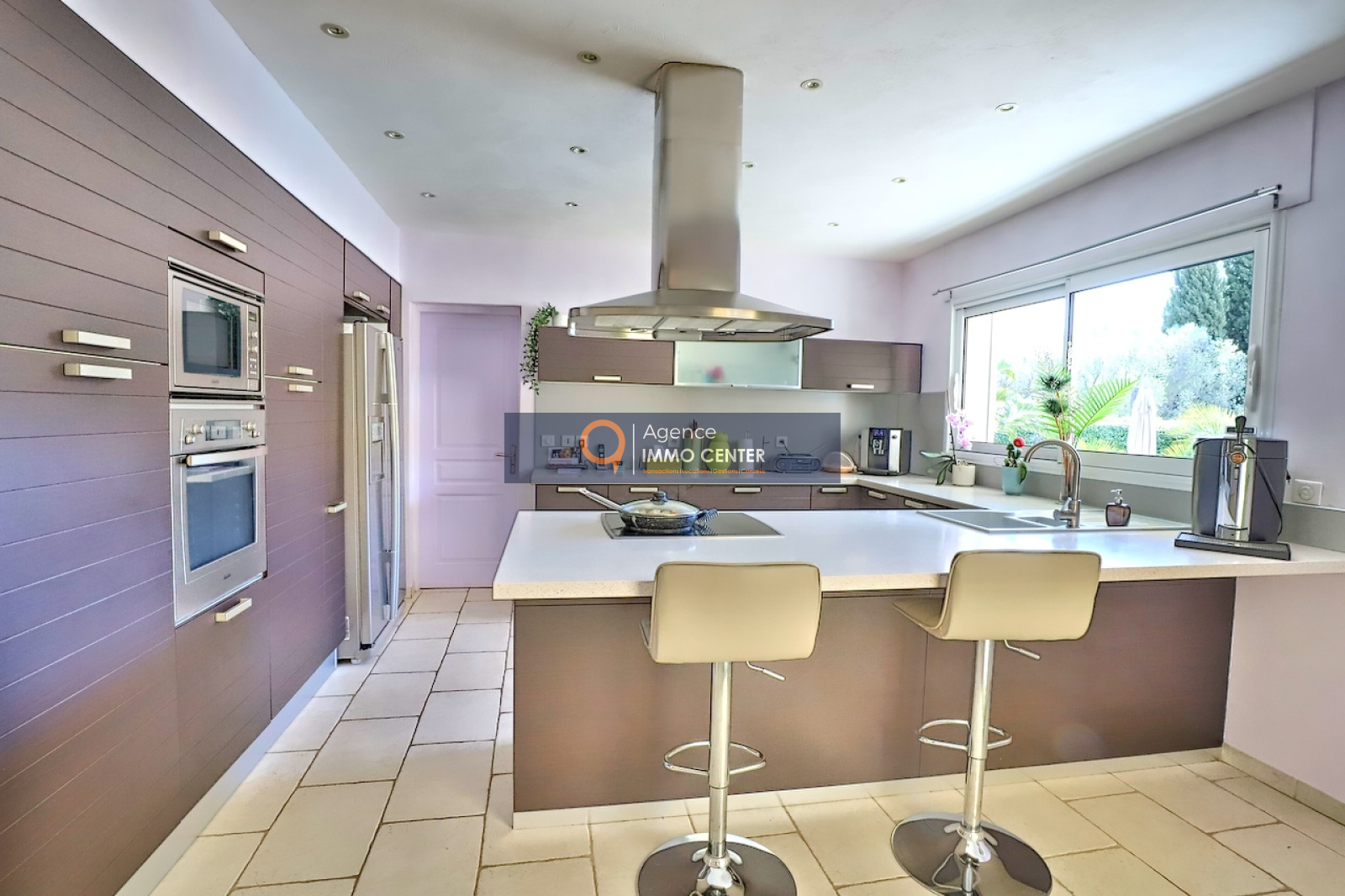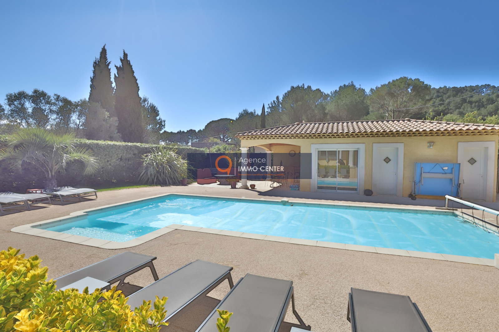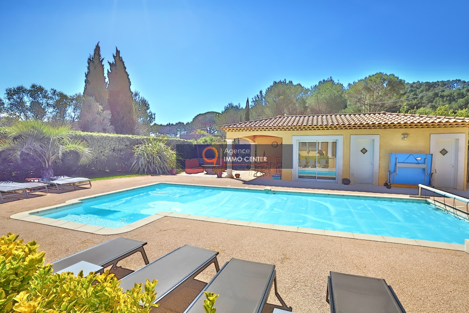 Solliès-Pont (83210)Sollies Pont, EXCLUSIVITE, superbe propriété de 230 m² habitables comprenant une villa de plain pied de 187 m², un studio independant de 35 m², un garage double de 45 m², un pool house, diverses dépendances, une grande piscine 10X5. La villa dispose d'un grand espace de vie avec cuisine équipée et cellier de 90 m², accés terrasse et piscine, 5 chambres dont une suite parentale, 2 salle d'eau, 2 Wc, le studio propose une chambre, un espace cuisine, une salle d'eau et WC. Plancher chauffant/rafraichissant par par géothermie plus clim réversible, panneaux photovoltaique, eau d'arrosage gratuite par forage, terrain plein SUD de 2000 m² clos de mur avec portail motorisé. Le secteur extremement calme est trés résidentiel et recherché, à 5 min de toutes les commodités dont gare féroviaire, 20 min des plages et de l'aéroport de hyeres les palmiers, à visiter rapidement. Mobile : 06 03 62 03 09