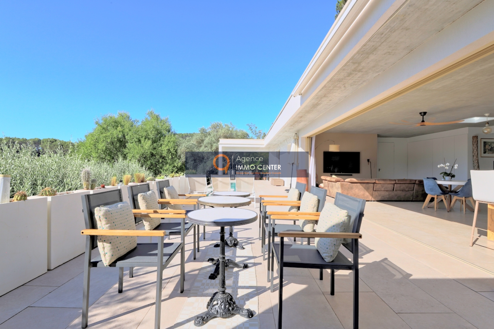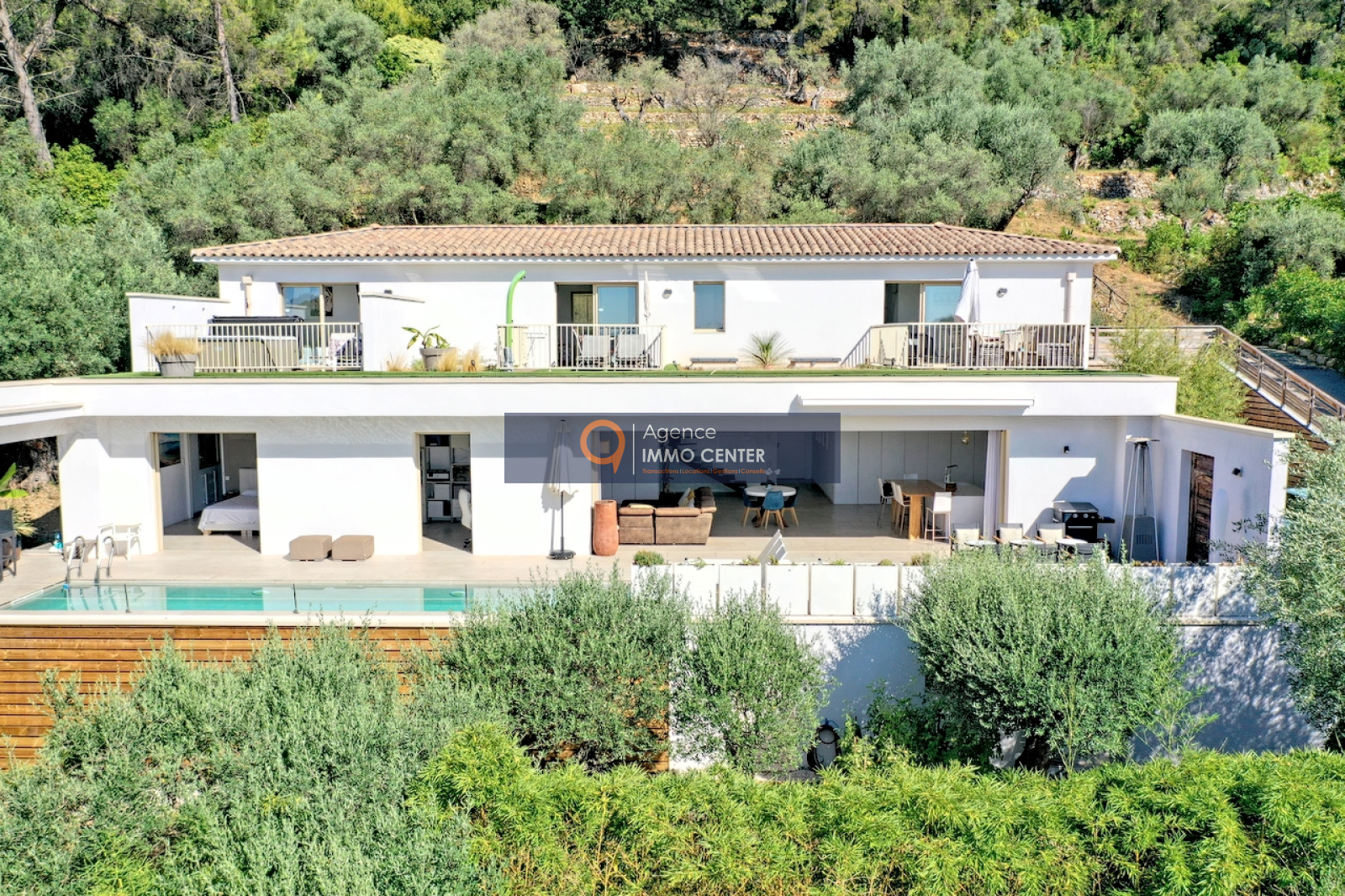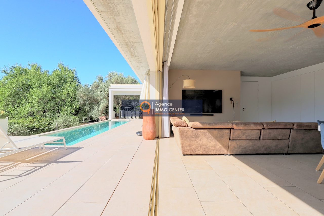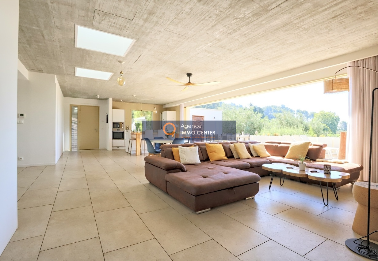 Solliès-Pont (83210)RARE A LA VENTE - A Sollies-Pont, Sainte Christine, dans un écrin de verdure au calme, lumineuse maison contemporaine de 239 m² aux prestations et équipements haut de gamme, comprenant : au rez-de-chaussée, cuisine ouverte avec cave à vin, séjour de 77 m² donnant sur terrasse de 75 m² avec piscine, 2 chambres dont une suite parentale avec salle d'eau, WC et dressing, buanderie ; à l'étage entrées indépendantes pour les 2 studios avec terrasse dont une avec jacuzzi et l'appartement de type T2 avec terrasse, sur une parcelle en restanques de 6024 m² avec garage double et parkings pour plusieurs véhicules, à proximité des commodités. Bonne rentabilité locative saisonnière ou annuelle pour les 3 appartements indépendants