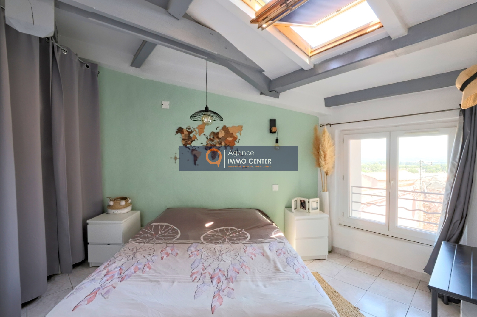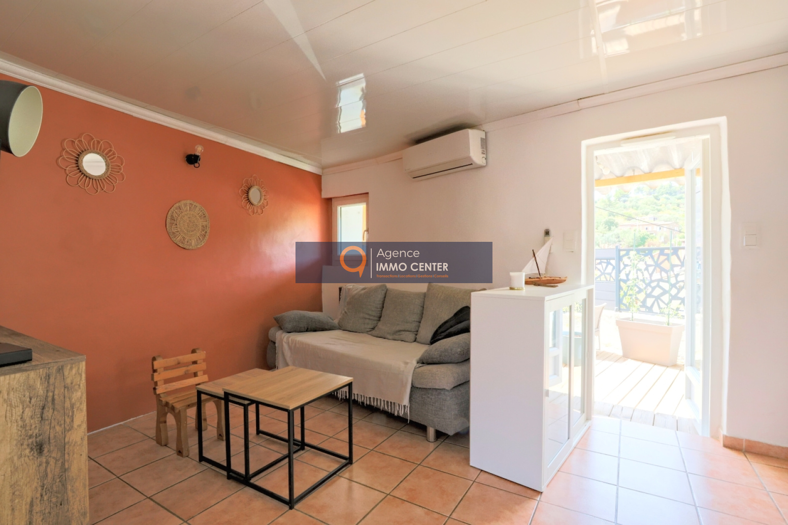 Sur le second niveau vous trouverez un bel espace de vie lumineux avec une double exposition, avec sa terrasse attenante.