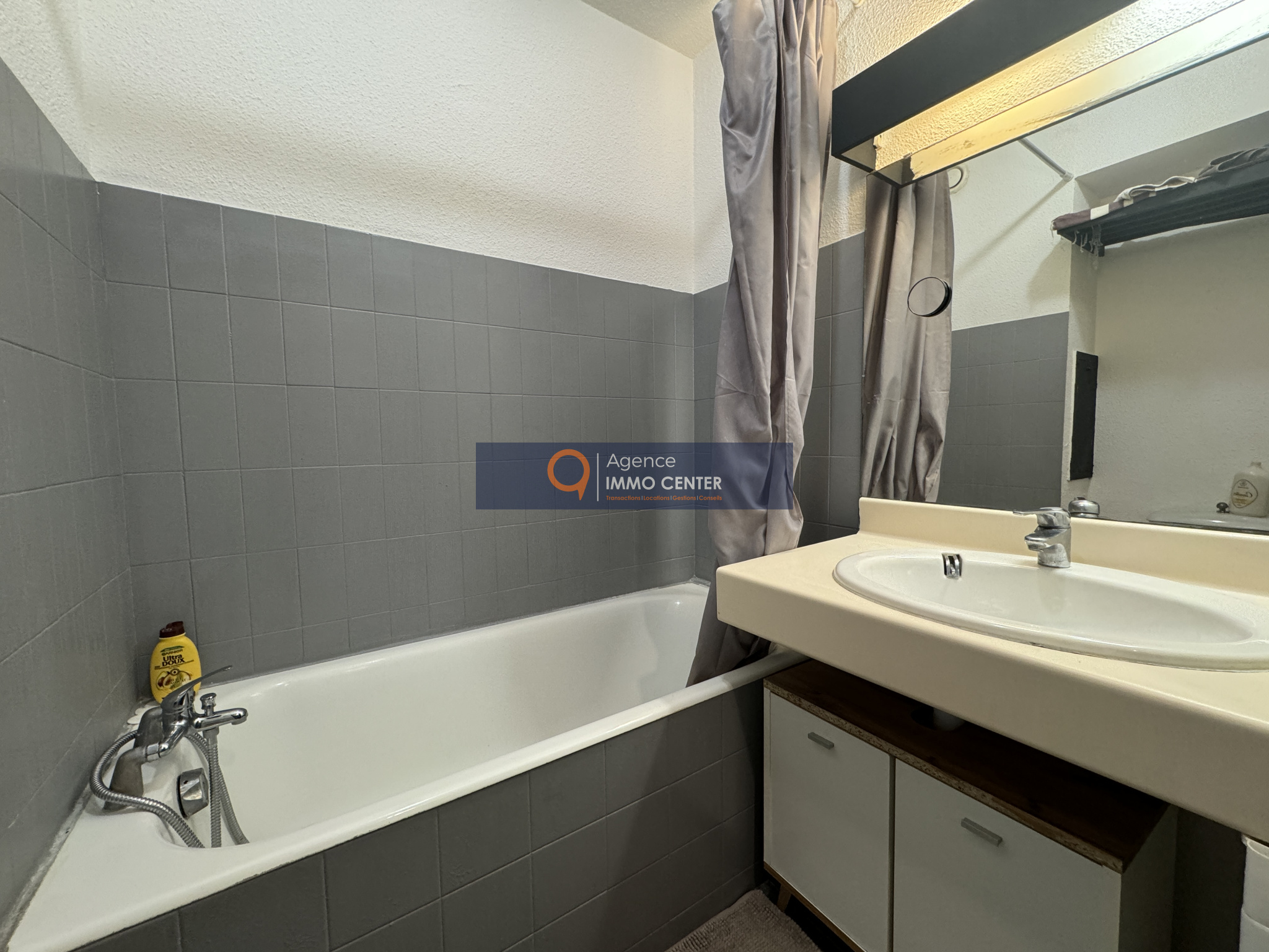 L'appartement se compose d'un espace de vie, avec séjour cuisine ouverte donnant sur une belle terrasse de 12m2, et d'une salle de bain avec wc.