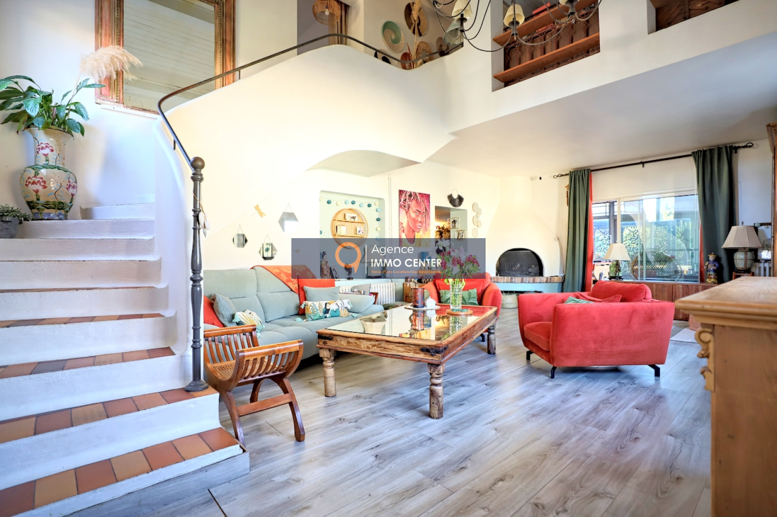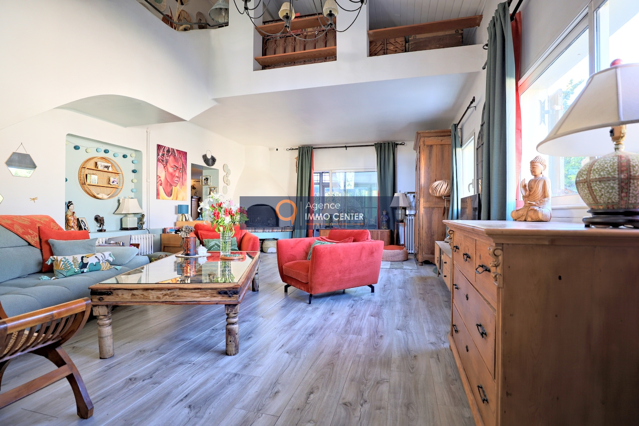 À l’étage, la maison offre 4 chambres dont deux avec accès à une terrasse, une mezzanine de 27 m², une salle d’eau et un WC.