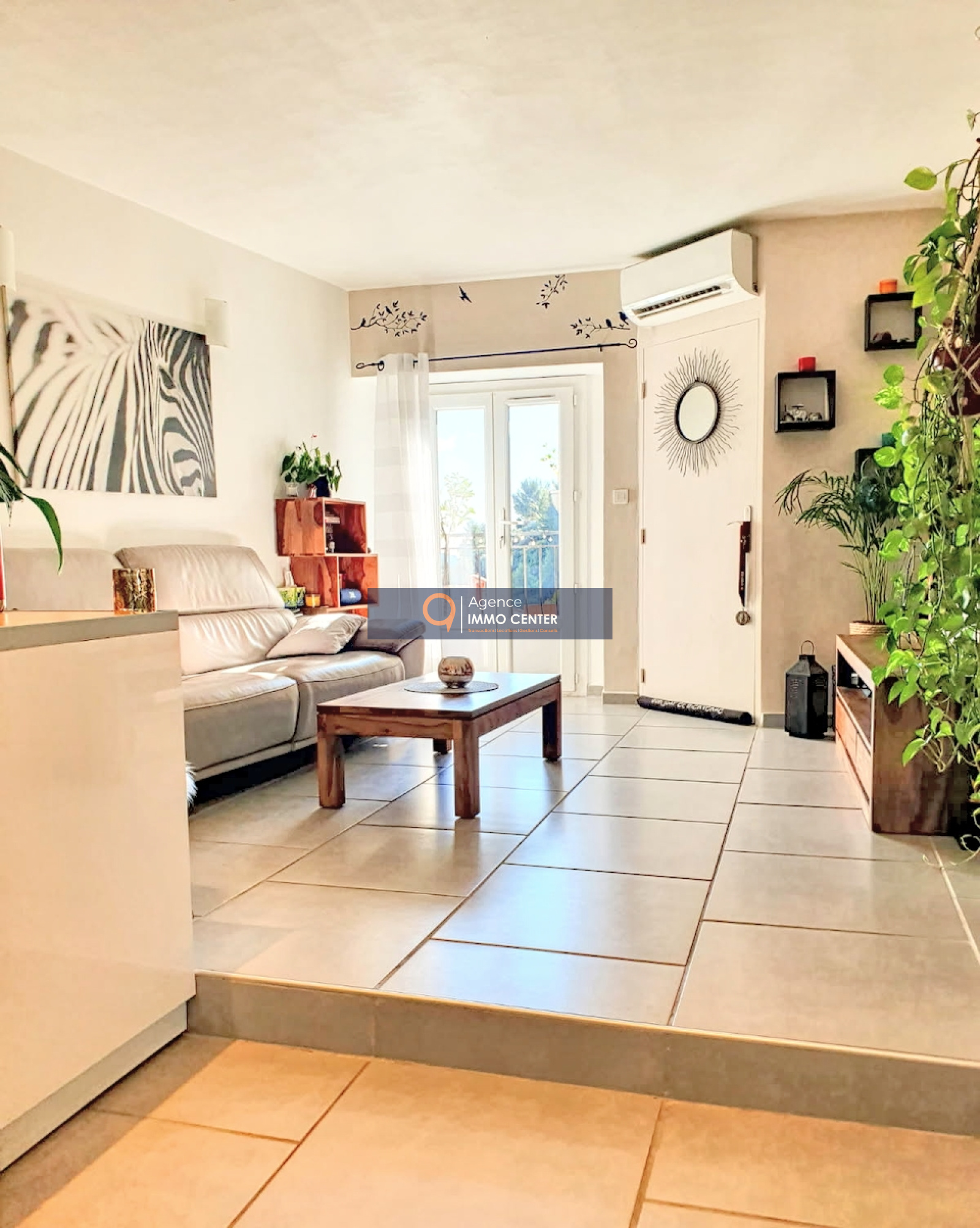 Dans cette ancienne maison de village, voici ce " Joyau " situé au premier étage de cette petite copropriété, une généreuse et lumineuse pièce de vie de 30 m²,une cuisine contemporaine ouverte sur le séjour avec accès à son petit extérieur. Une exceptionnelle vue dégagée avec" échappée mer." Une chambre sans vis à vis, une salle d'eau style douche italienne avec wc, un espace buanderie sous l'escalier qui dessert l'appartement, un vaste dressing dans le hall d'entrée. (Présence de la climatisation)