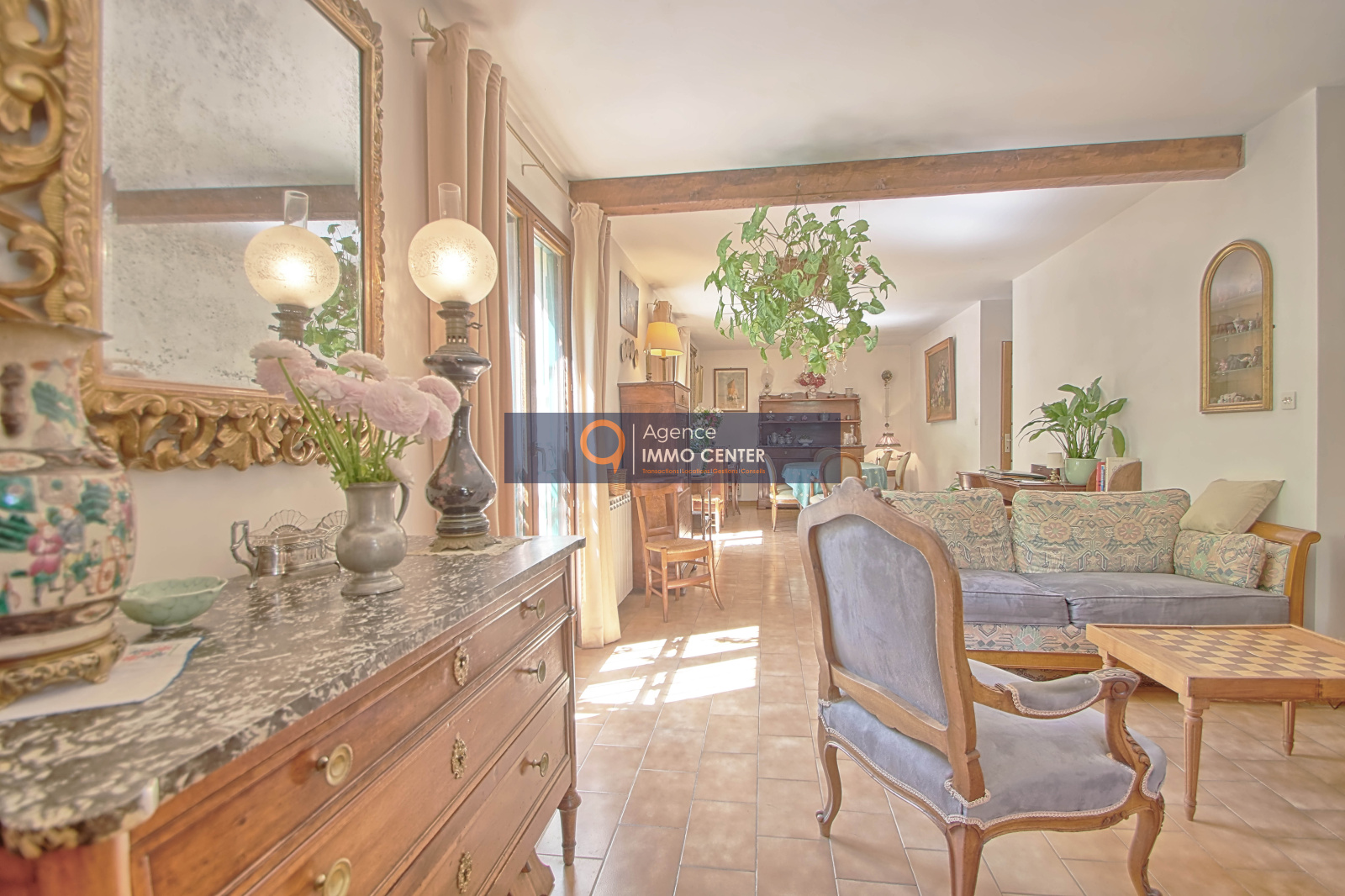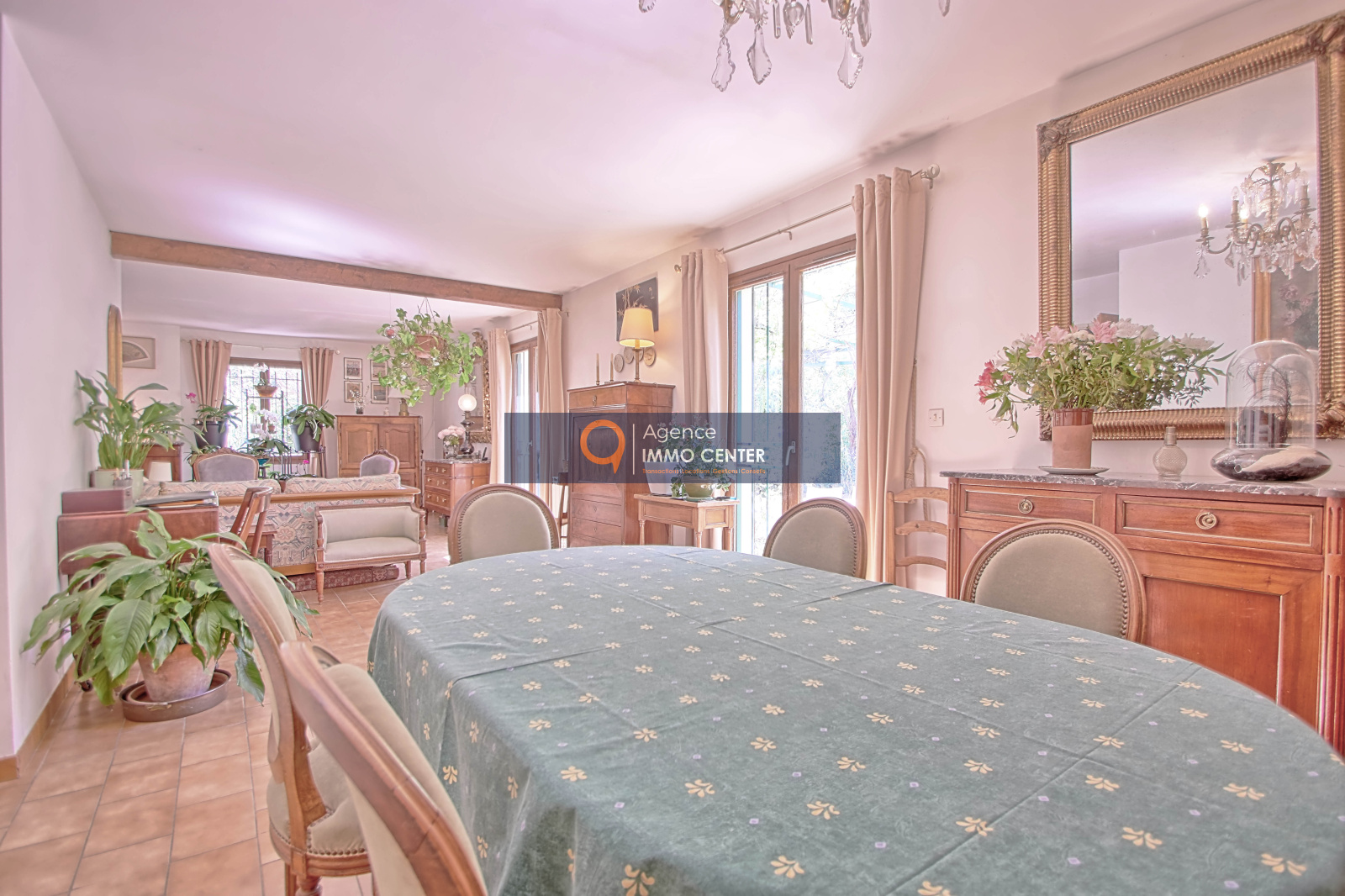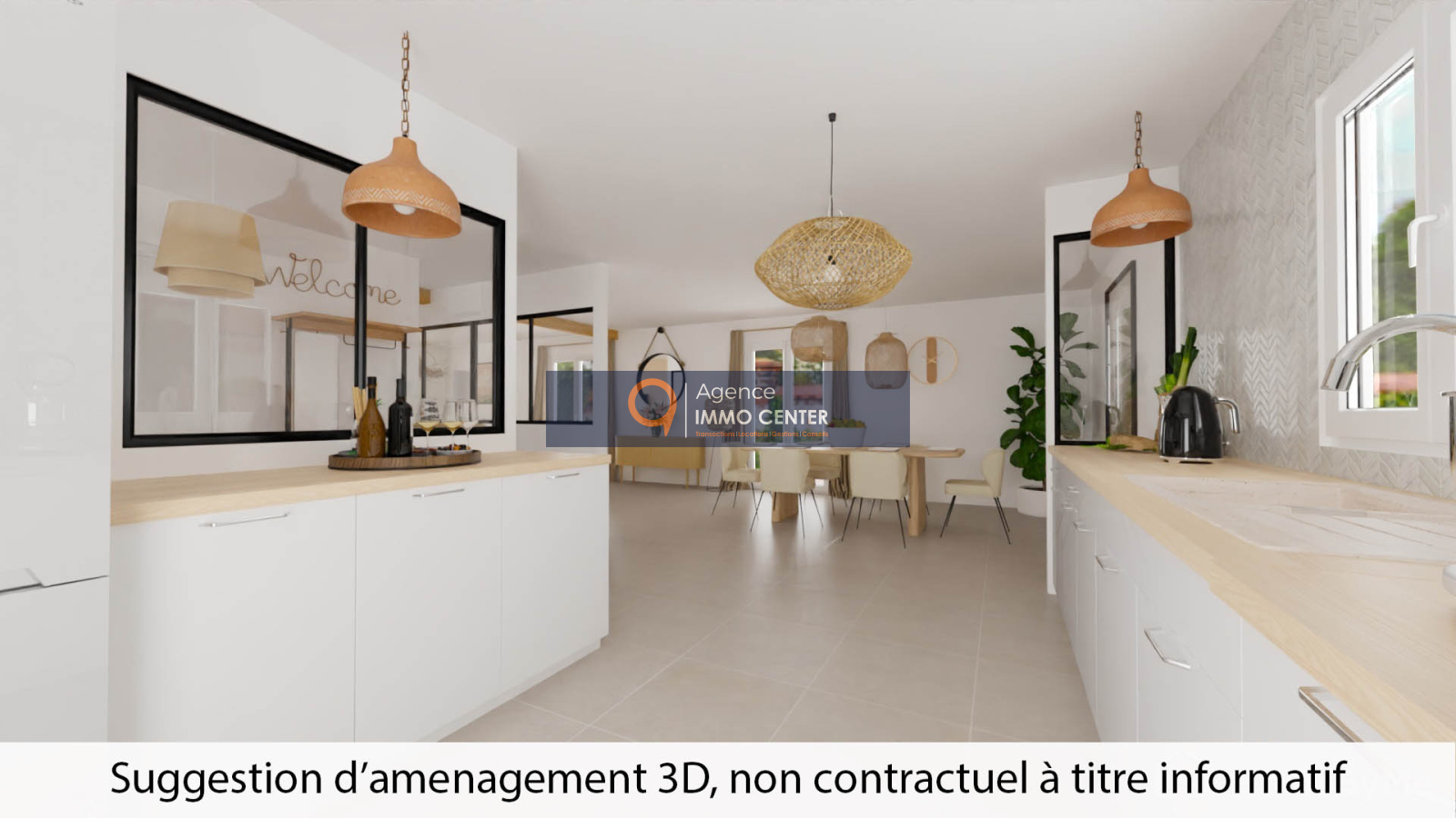 D’un hall d’entrée, d’un lumineux séjour avec accès terrasse, une cuisine séparée, cinq chambres dont une suite, un bureau, un grand garage.