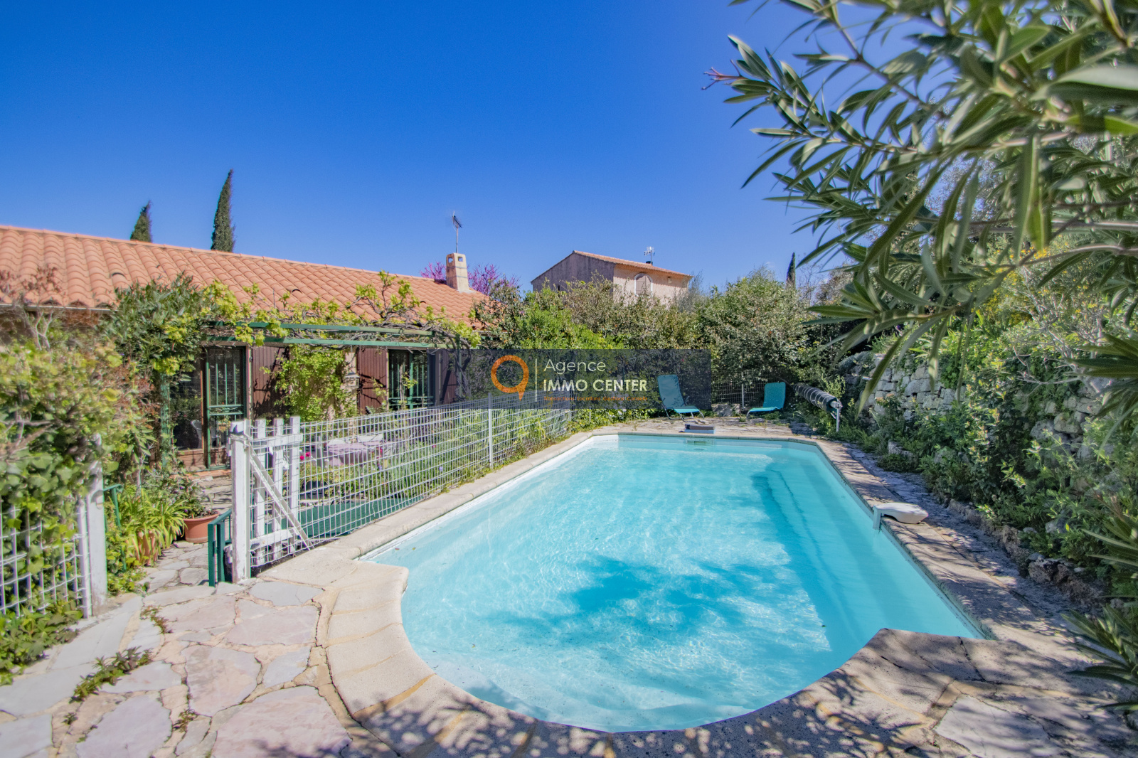 Vaste villa de type 6 d’une superficie de 152 m2 avec piscine et garage de 40 m2 sur une parcelle de 1040 m2.