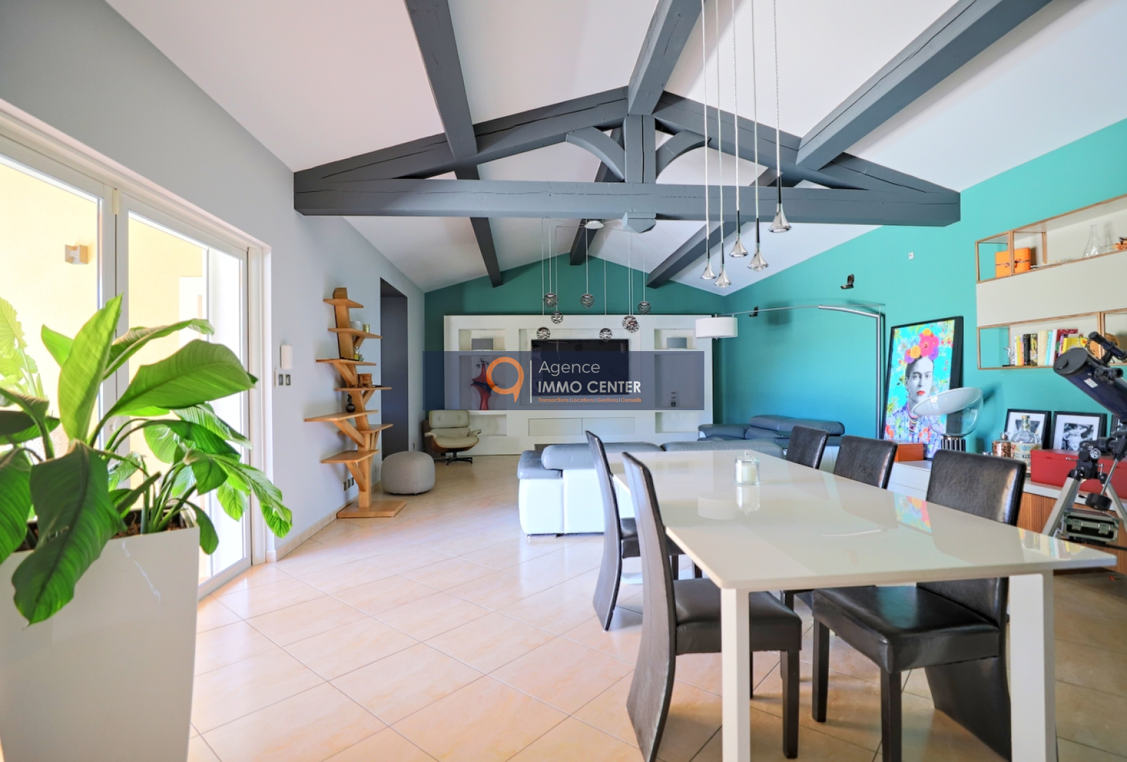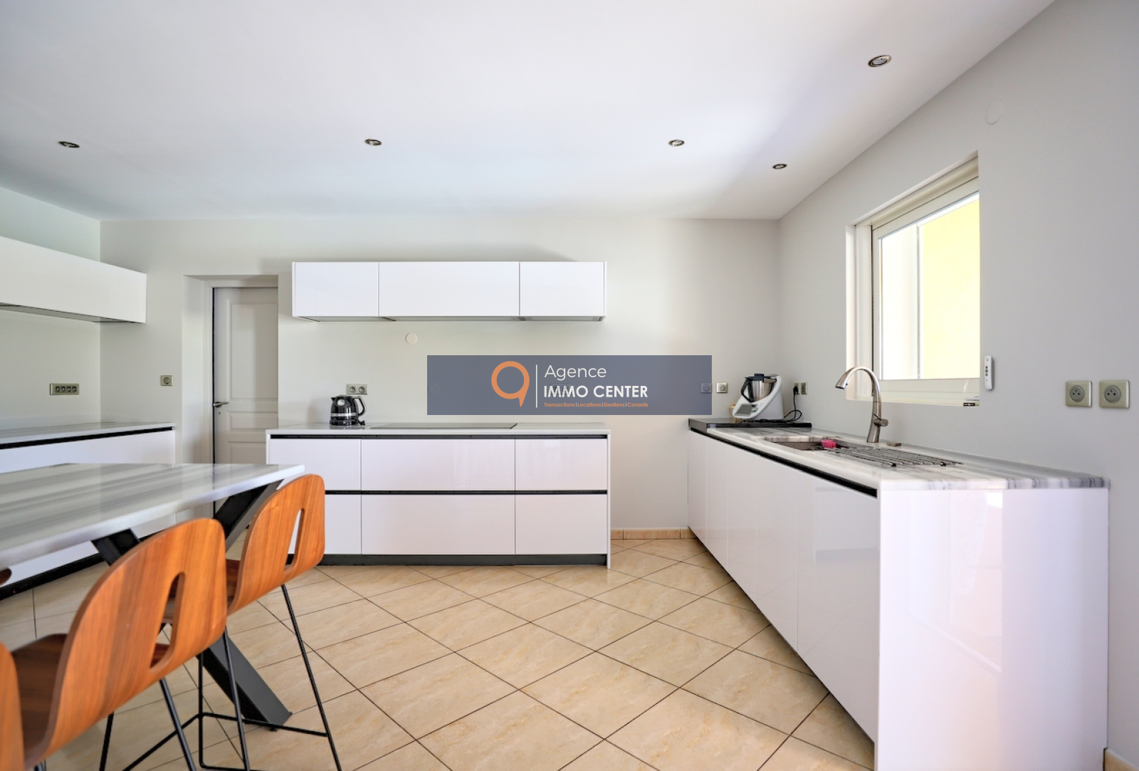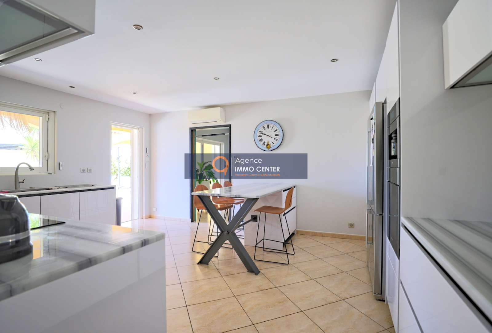 Superbe villa de 2012 de plain-pied bénéficiant de nombreuses prestations haut de gamme d’une superficie de 150 m2 avec piscine et garage de 40 m2 sur une parcelle entièrement clôturée de 673 m2