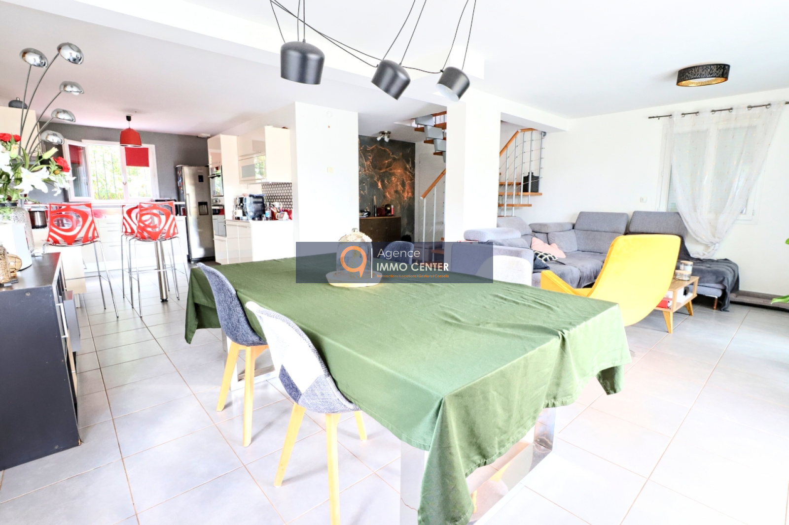 D’une belle pièce de vie lumineuse, avec sa cuisine ouverte aménagée et équipée, et une grande buanderie attenante