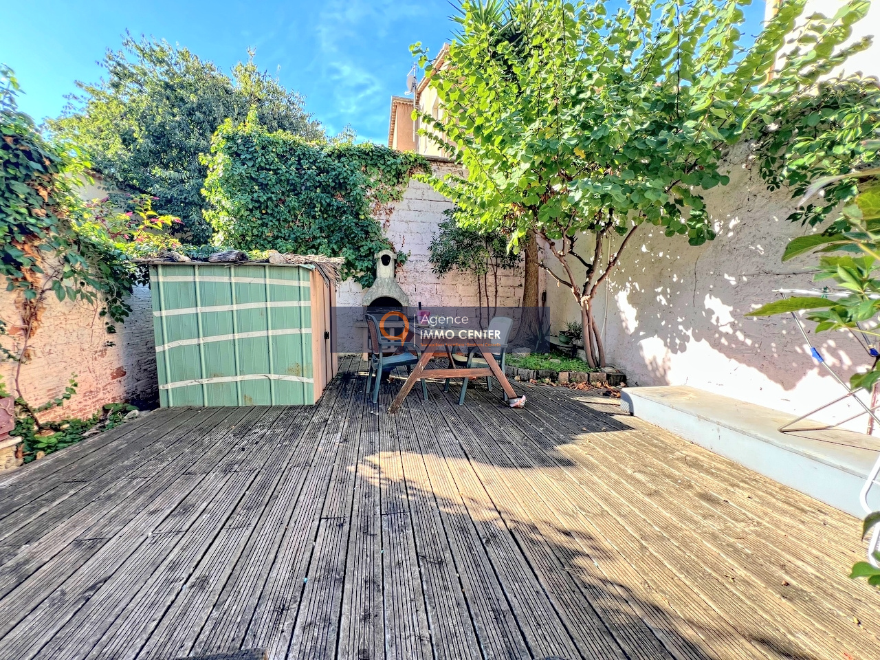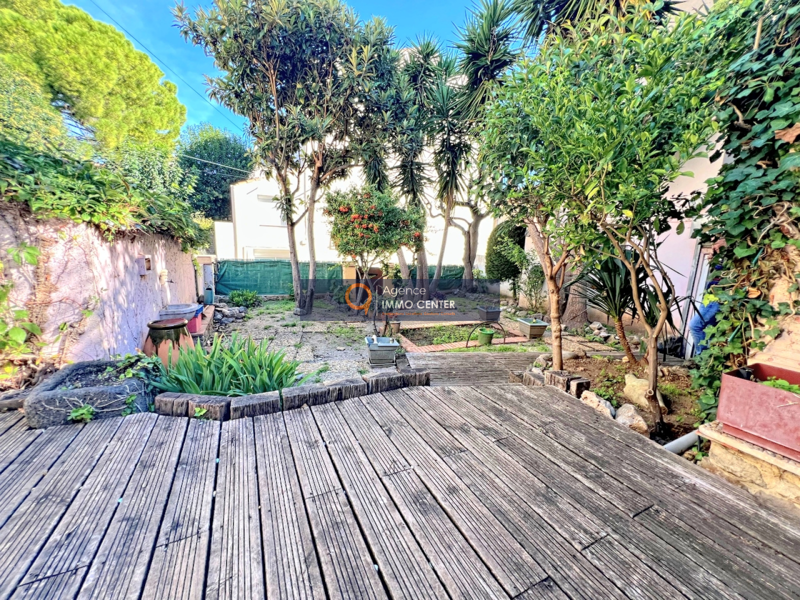 Accès privatif via un portillon ouvrant sur un jardin intime et arboré de 100 m².
