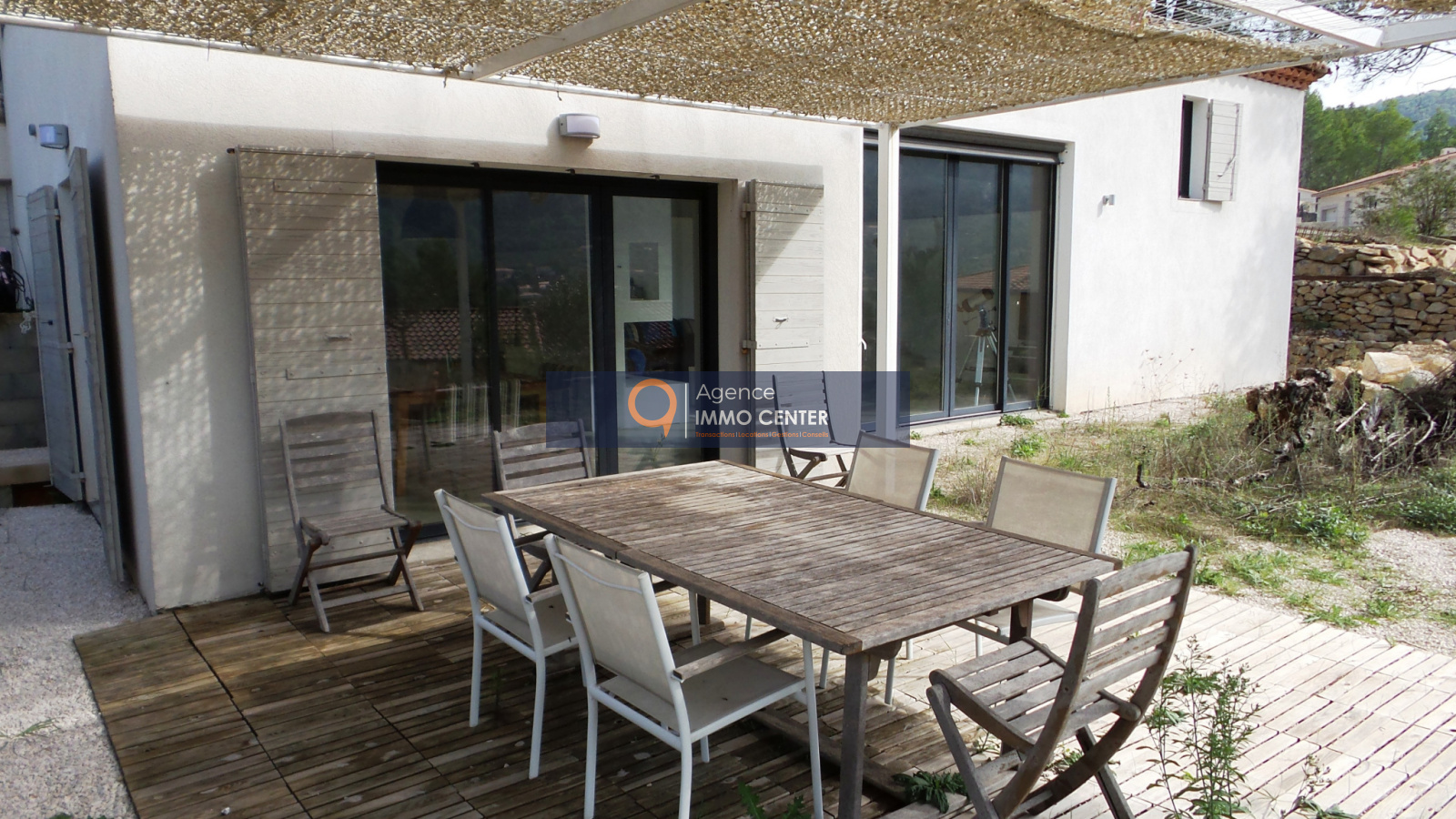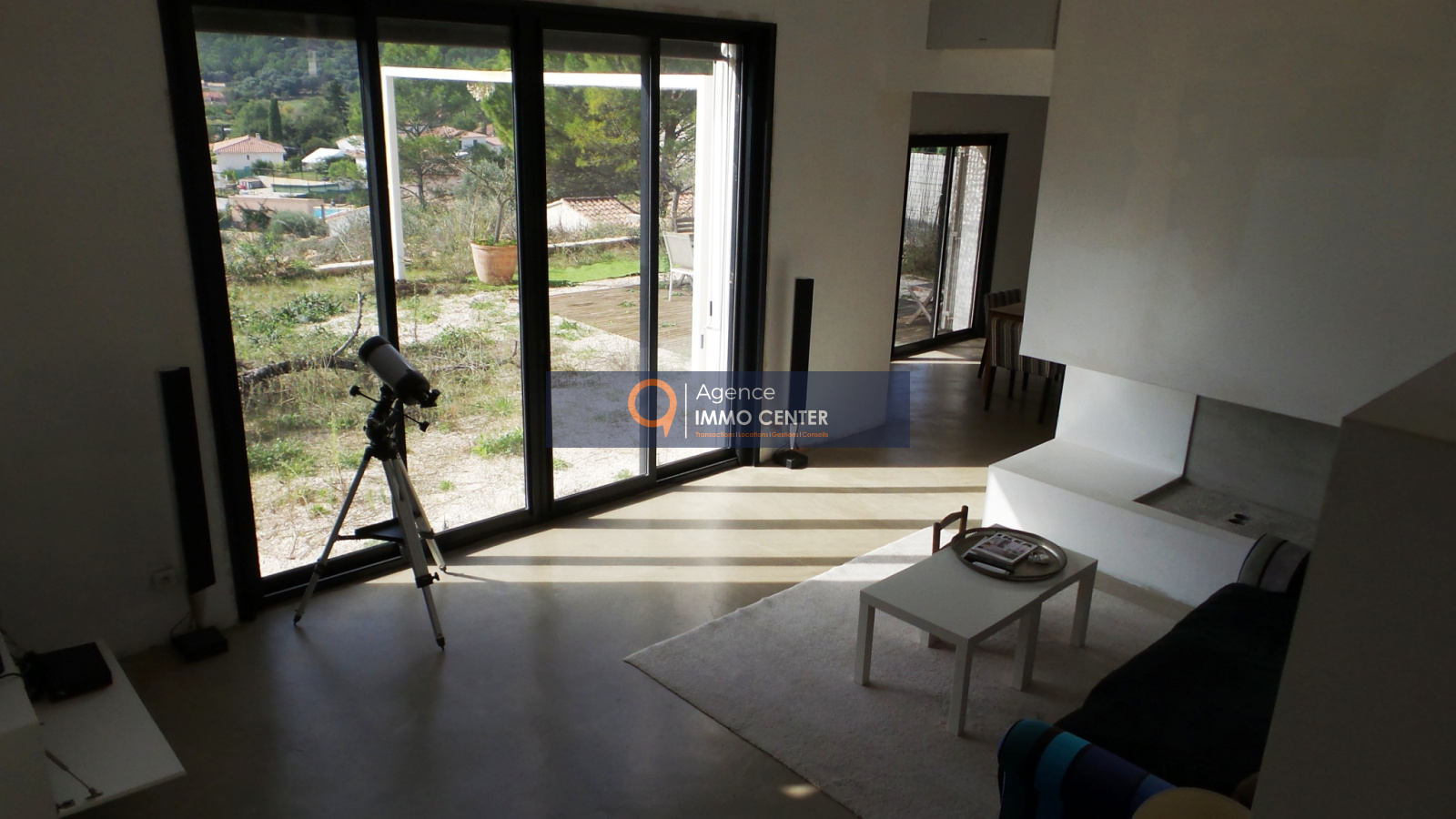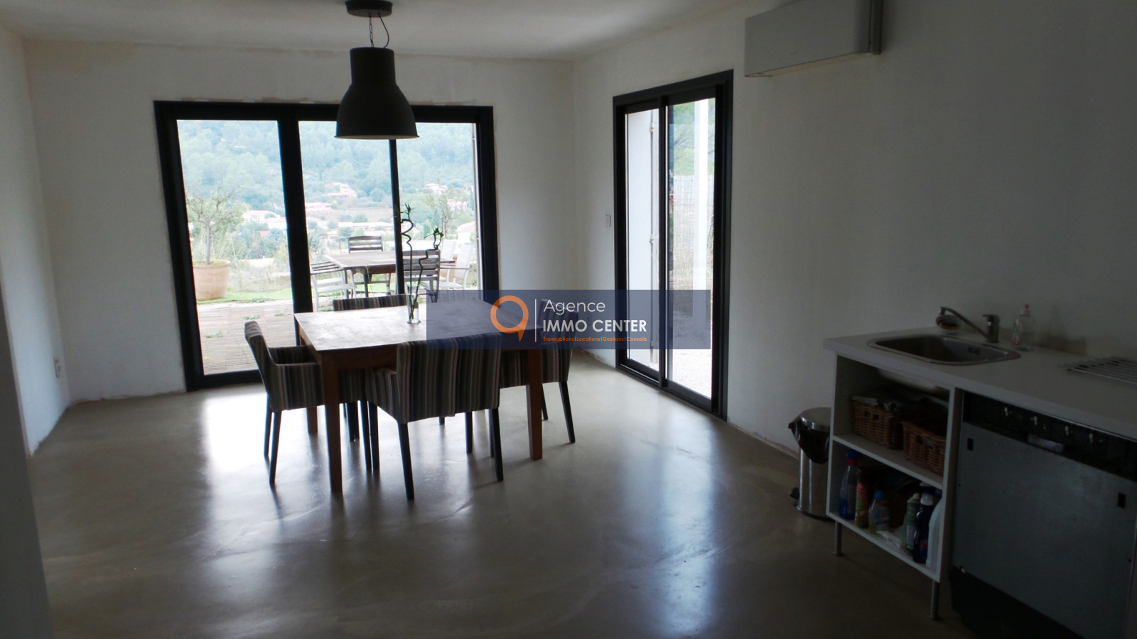 Solliès-Toucas (83210)Sollies Toucas, mandat EXCLUSIF, villa d'architecte contemporaine à terminer d'aménager, 150 m² habitables, de trés belles prestations ( menuiseries alu à galandage, clim réversible daikin dans toutes les piéces, béton ciré, etc ), secteur calme absolu, exposition plein Sud, une des meilleures de Sollies Toucas, quartier recherché, terrain d'environ 900 m² avec vue panoramique
