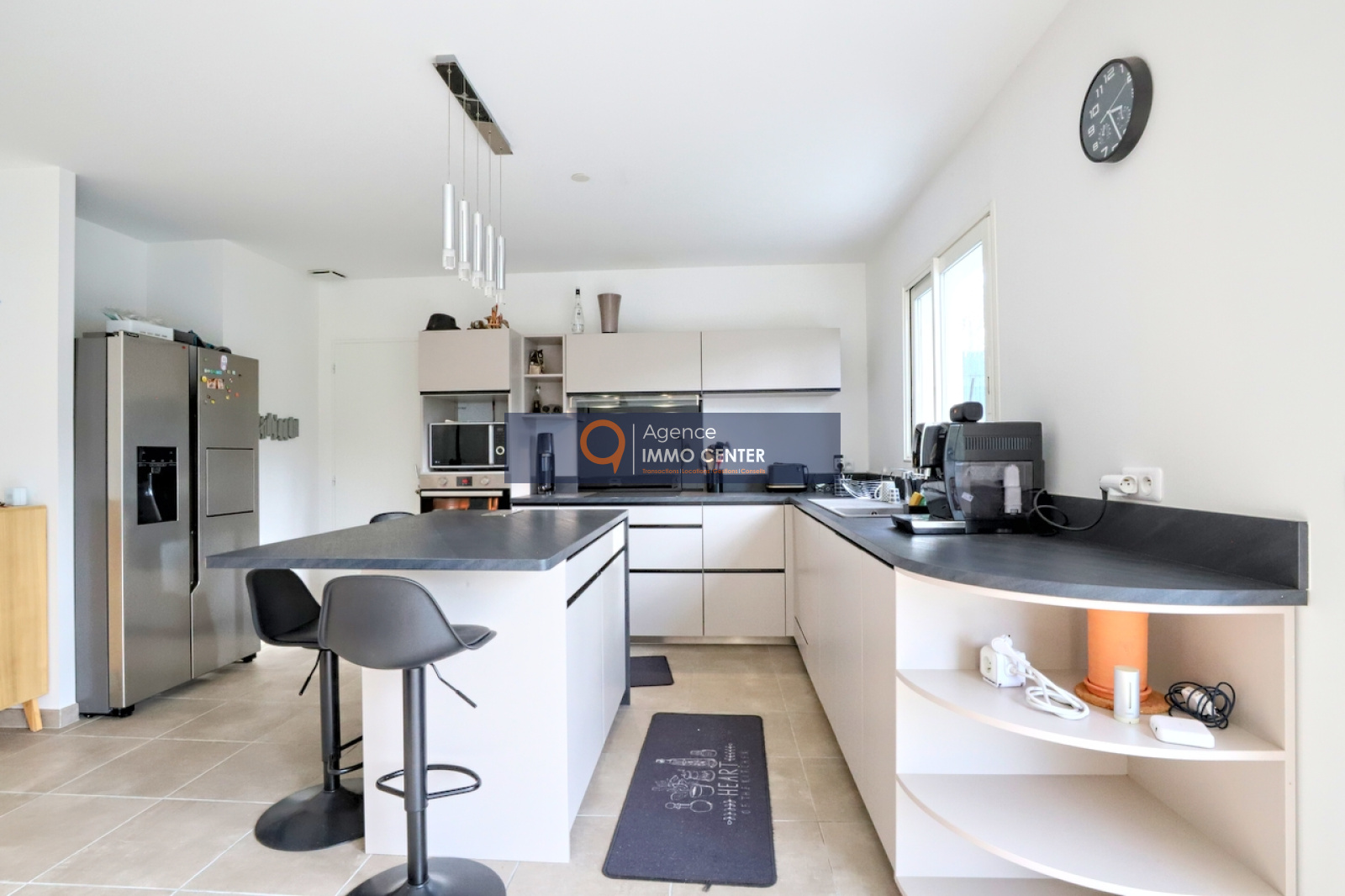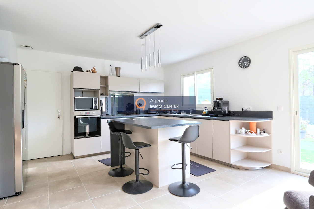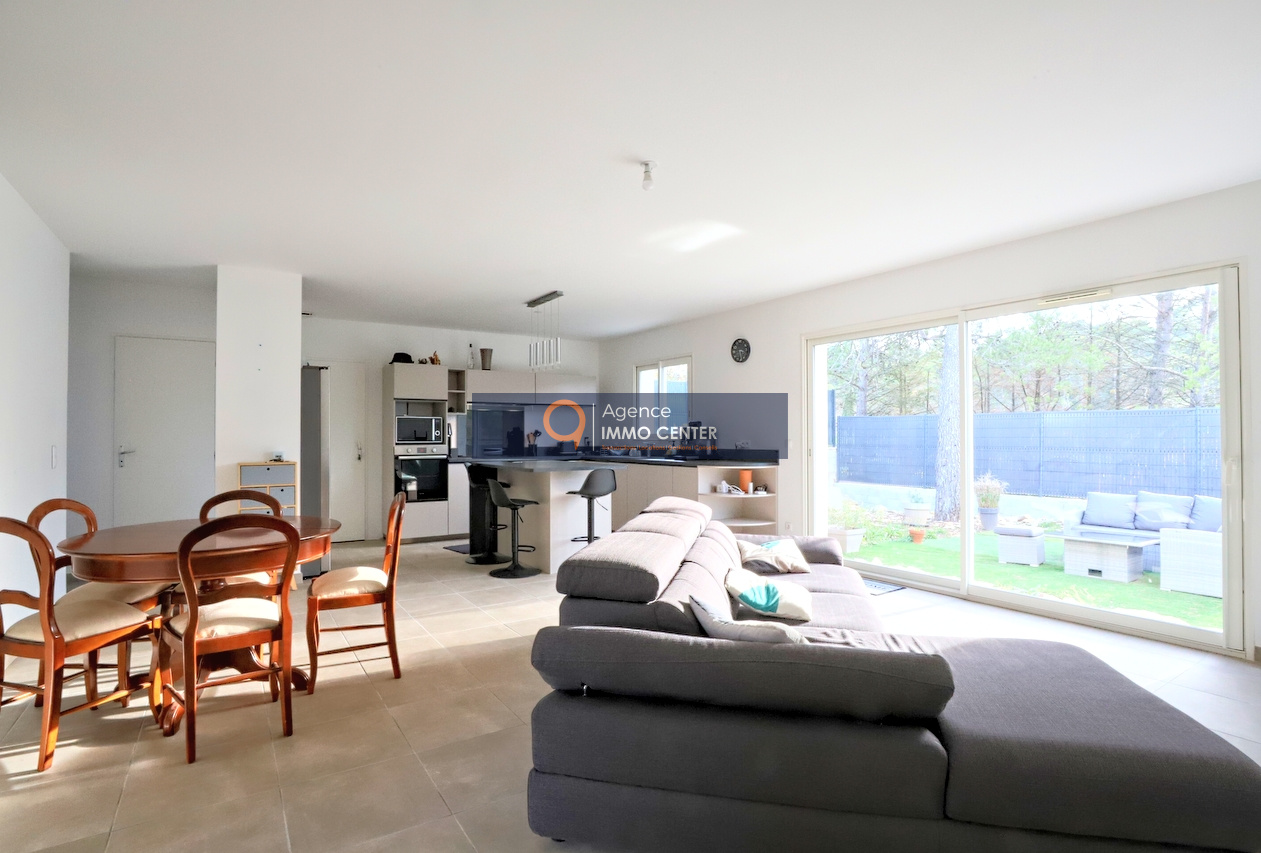 Cette maison moderne d'environ 75m2, sur une parcelle de 390m2 se compose, d'une belle pièce de vie lumineuse, aves sa cuisine ouverte aménagée et équipée.
